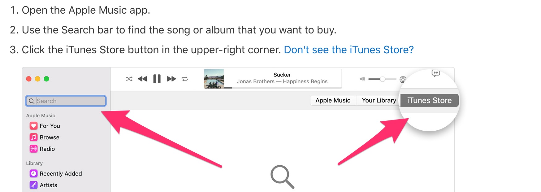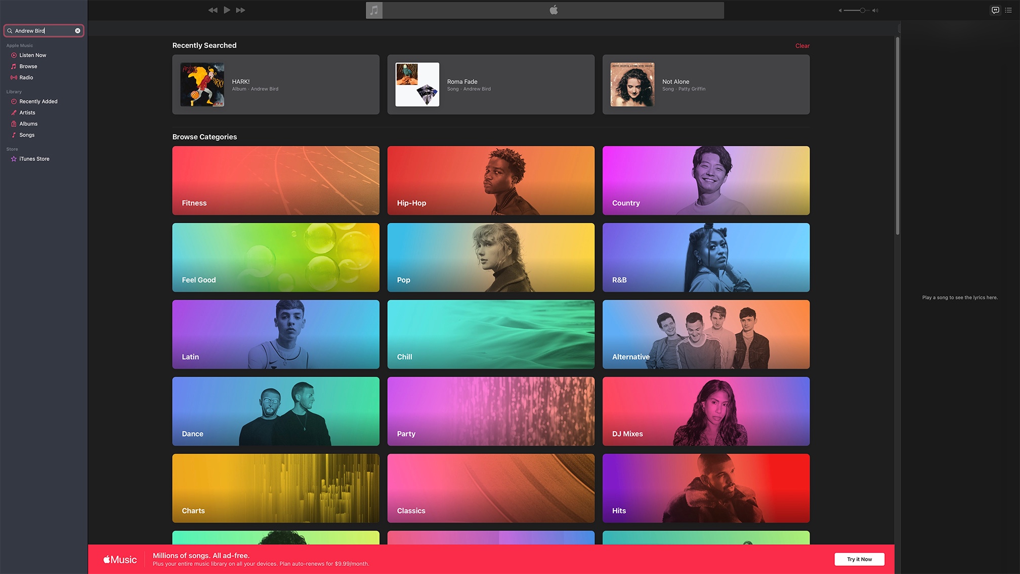 Where is the search bar in iTunes to search for music that is personal choice? I'm using Big Sur and within Music and iTunes Store I can see what you want to show me, but I have no way of finding an artist by searching for them or to search for a specific song. Why is this?