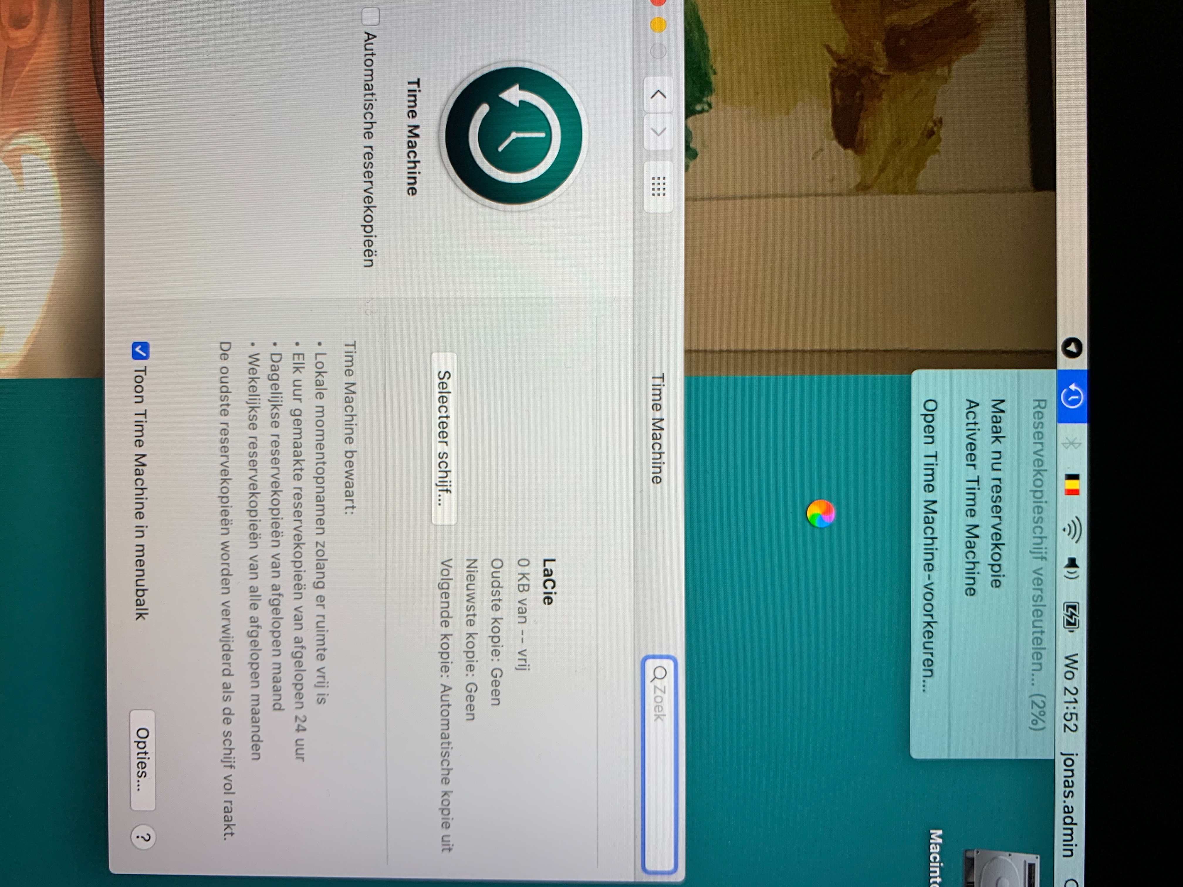 I am trying to do my first time machine backup with encryption from my MacBook Pro to a new Lacie external hard drive.