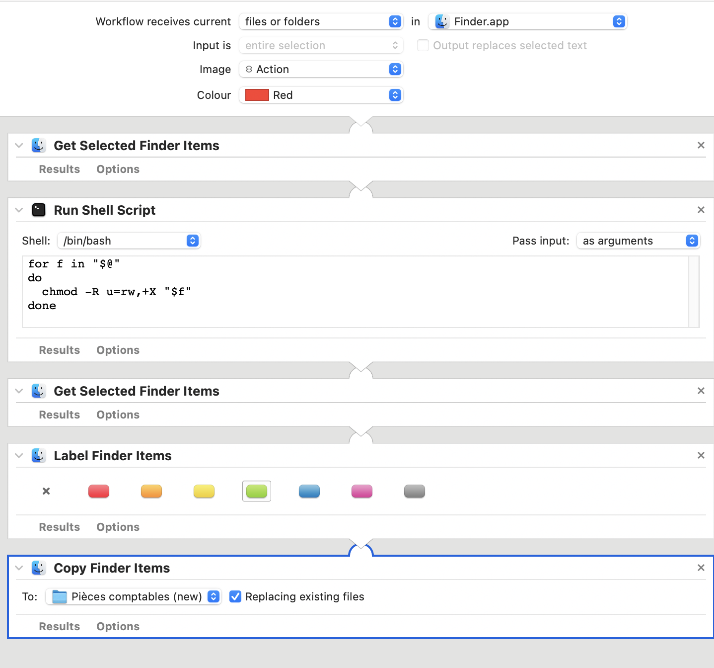 The quick action was designed to ask on selected Finder files. It was doing three things :