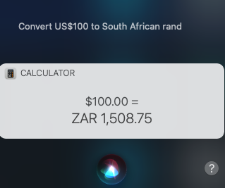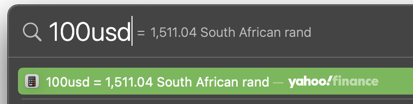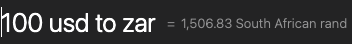 Now, entering the phrase gives me a conversion in GBP, something I do not want. Clicking on the little arrow at the end of the entry gives 4 more conversions, but none in ZAR. To obtain the wanted conversion I need to enter "100usd to zar" - for someone like me who uses this feature multiple times every day this is seriously a step backward and I can't see who the change benefits.