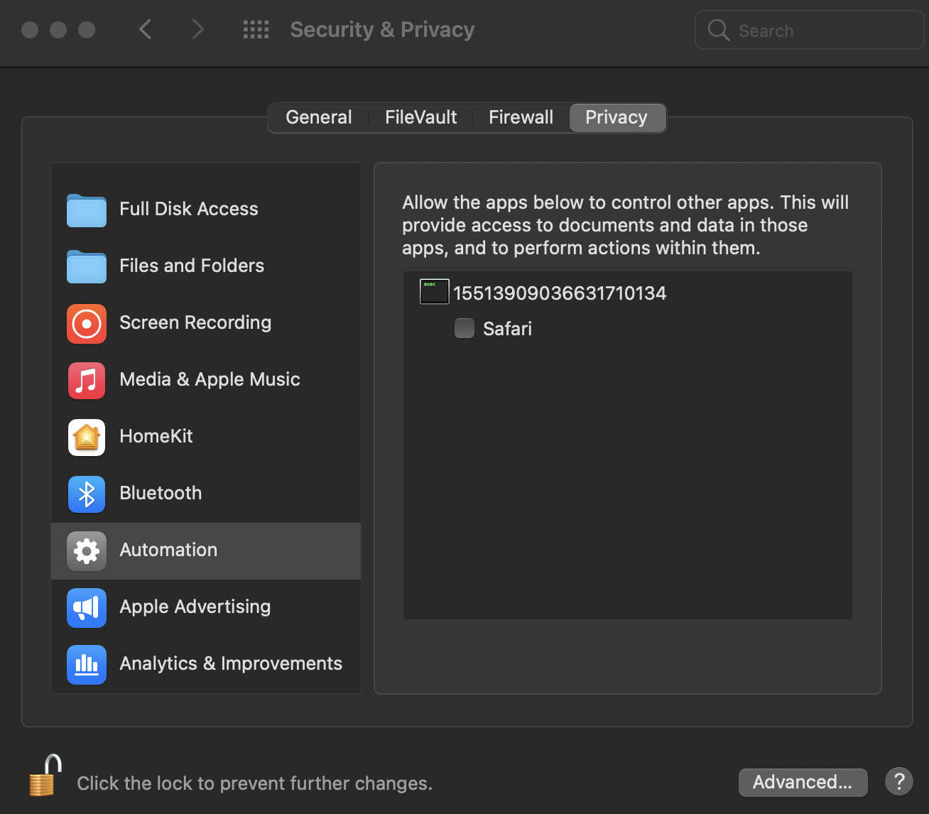 I immediately unchecked Safari again, worst I cannot even open my FileVault, and I know I have the right access code because I took a picture.