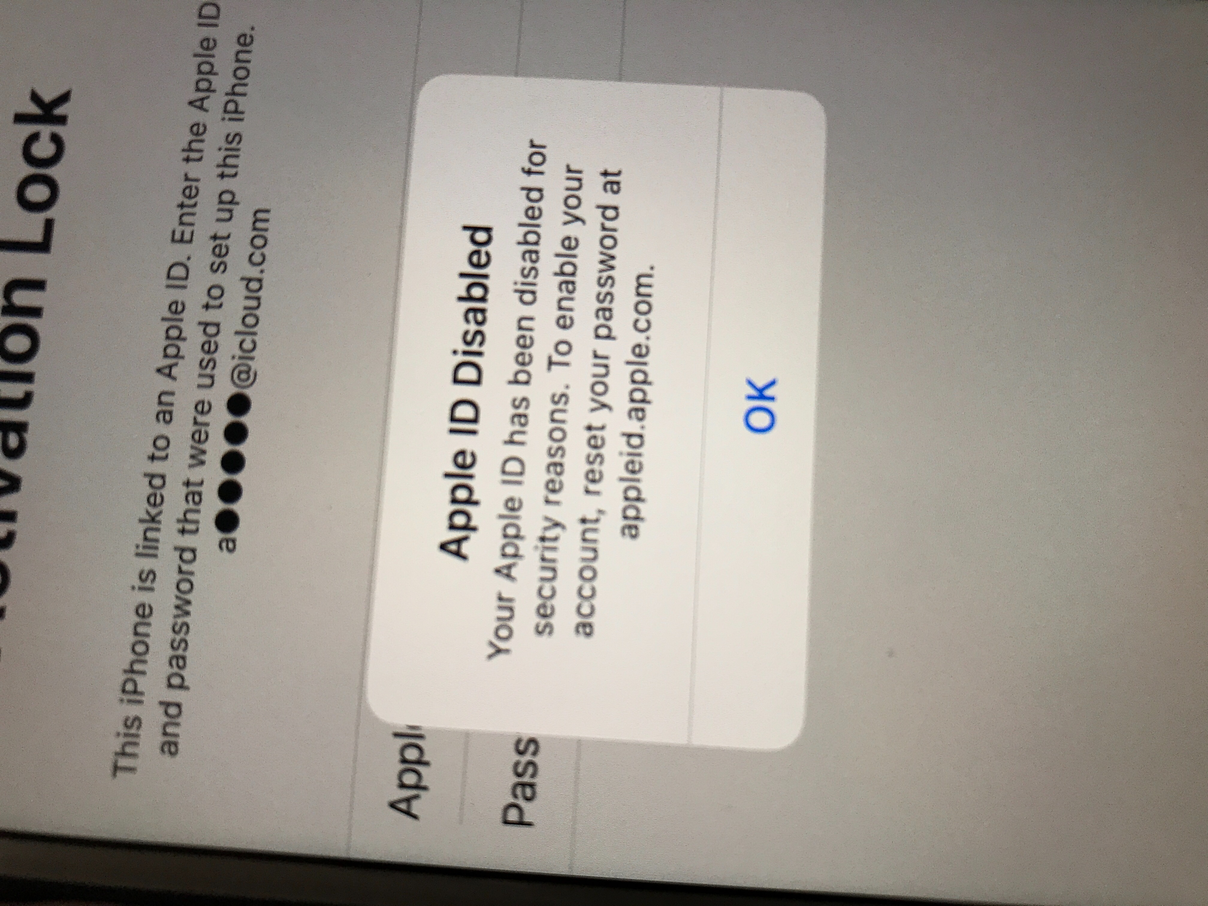 You Apple ID has been disabled for security