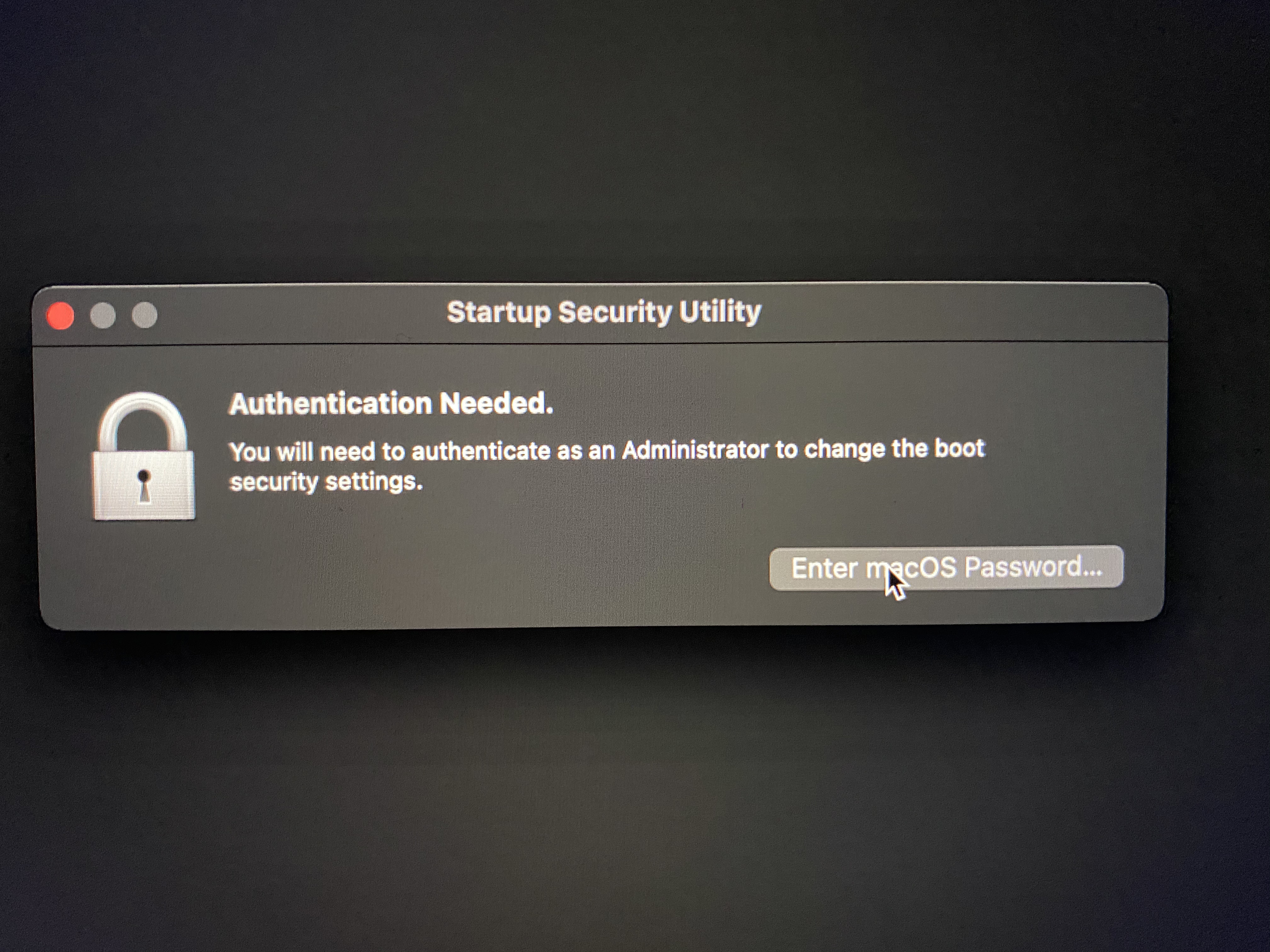 System startup utility not prompting for password - Macbook Pro 16 inch, Big Sur