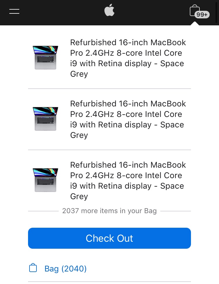 A few weeks ago, I was messing around with the Apple website on my phone. I added well over 3000+ items in my bag. I’ve removed a few of them, but I still have so much. I’m not signed in to Apple, so I can’t remove it on my Mac. It would take way too long to remove each one individually, one by one. Any way to quick clear my bag? Thanks