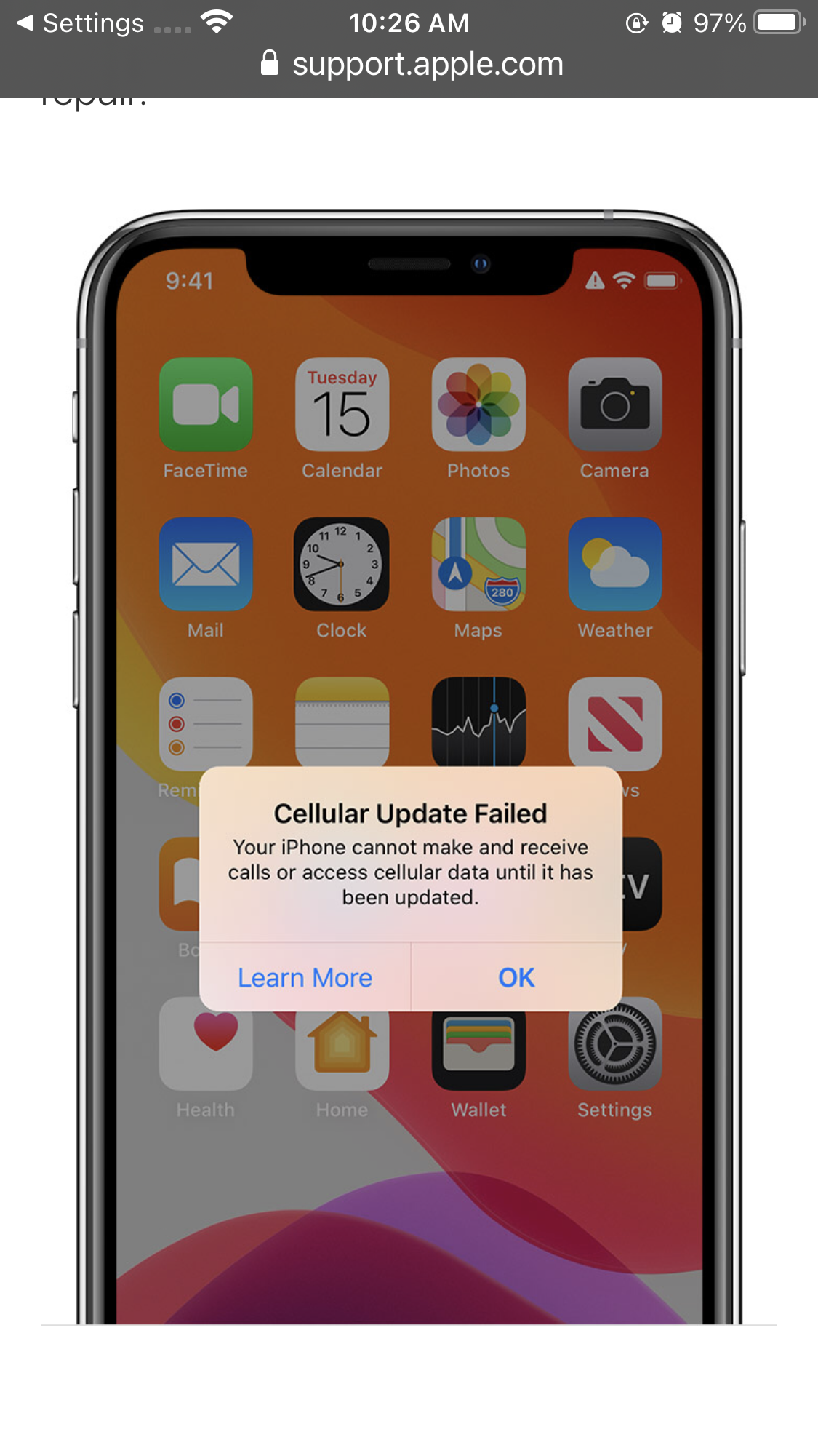 Cellular update failed