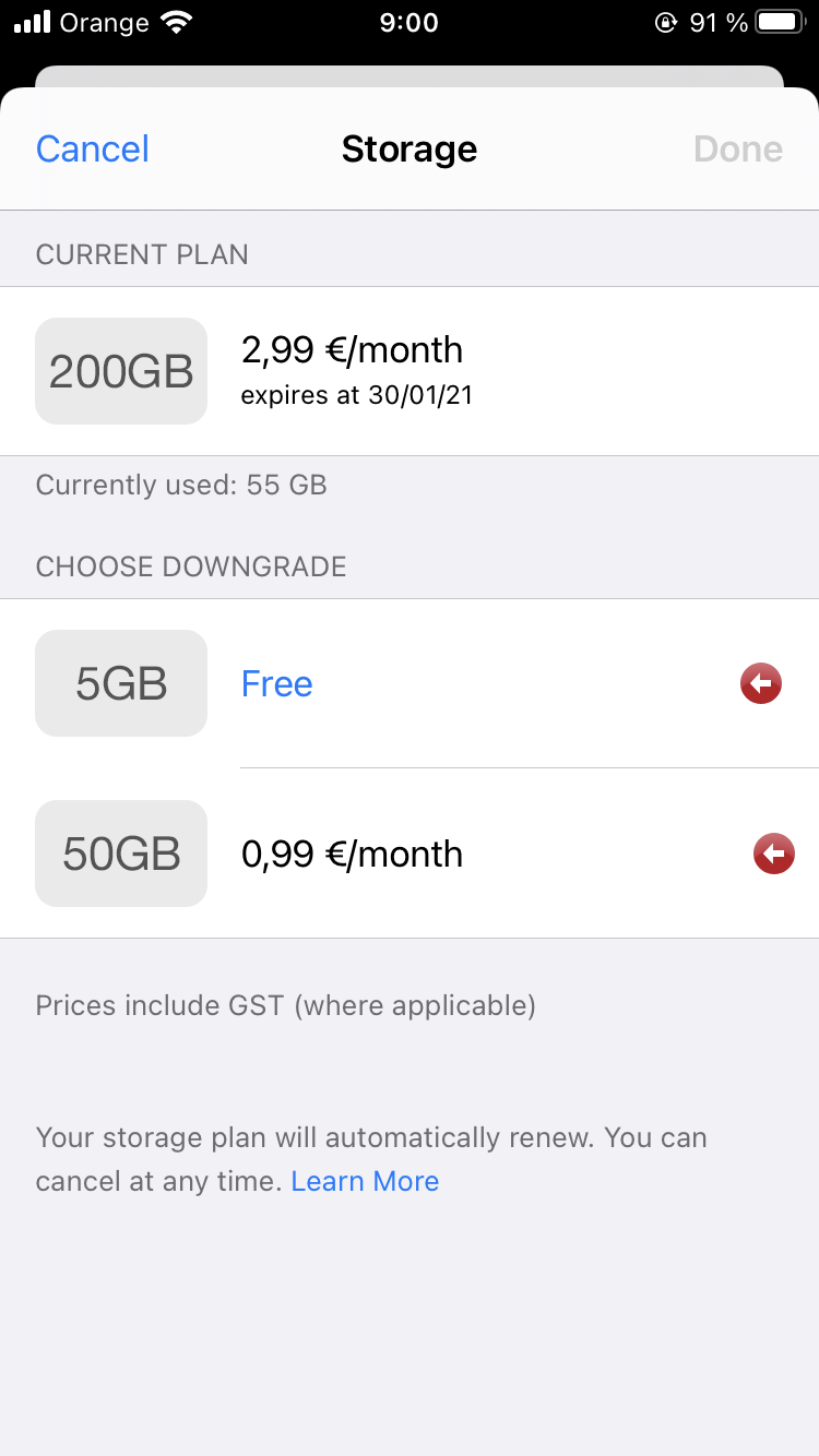 Hello for a month I’ve been trying to cancel/downgrade my iCloud storage plan but it’s not working. What should I do?