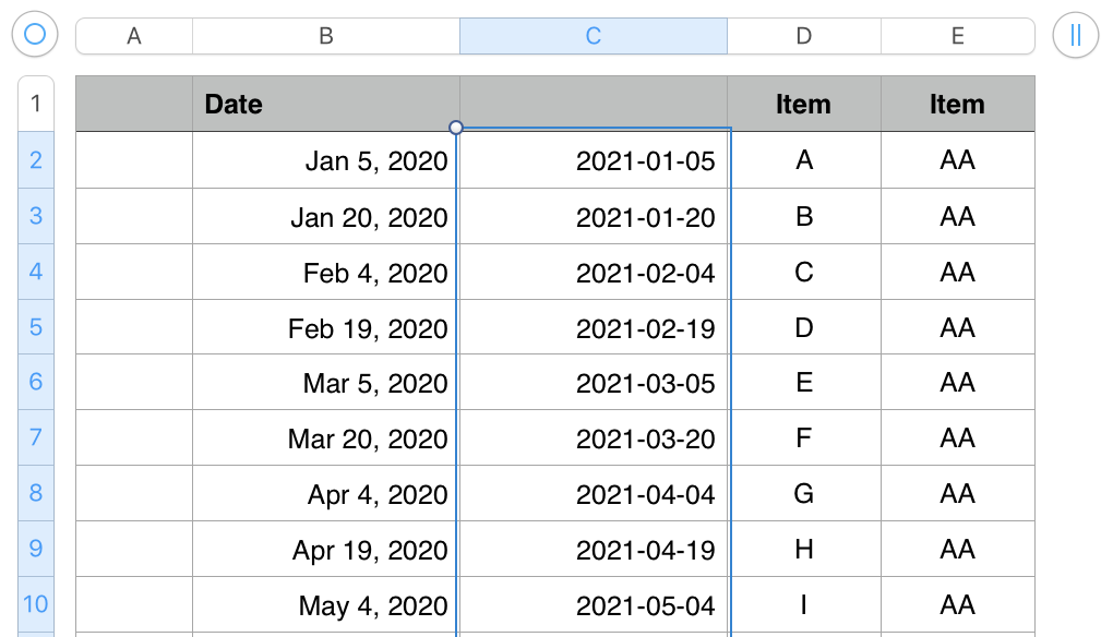 Assuming it's the whole date and time value (with the time part not displayed), does each date need to be changes to the same day of the same month one year later?