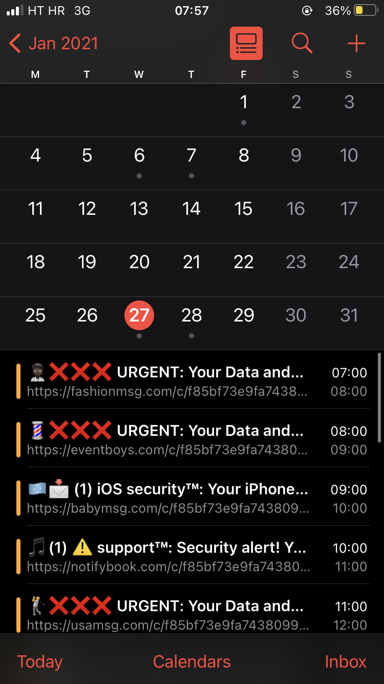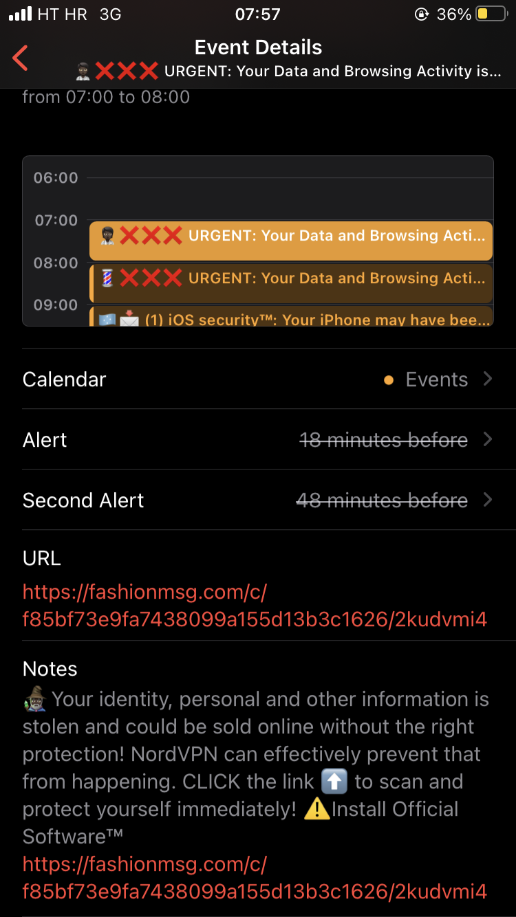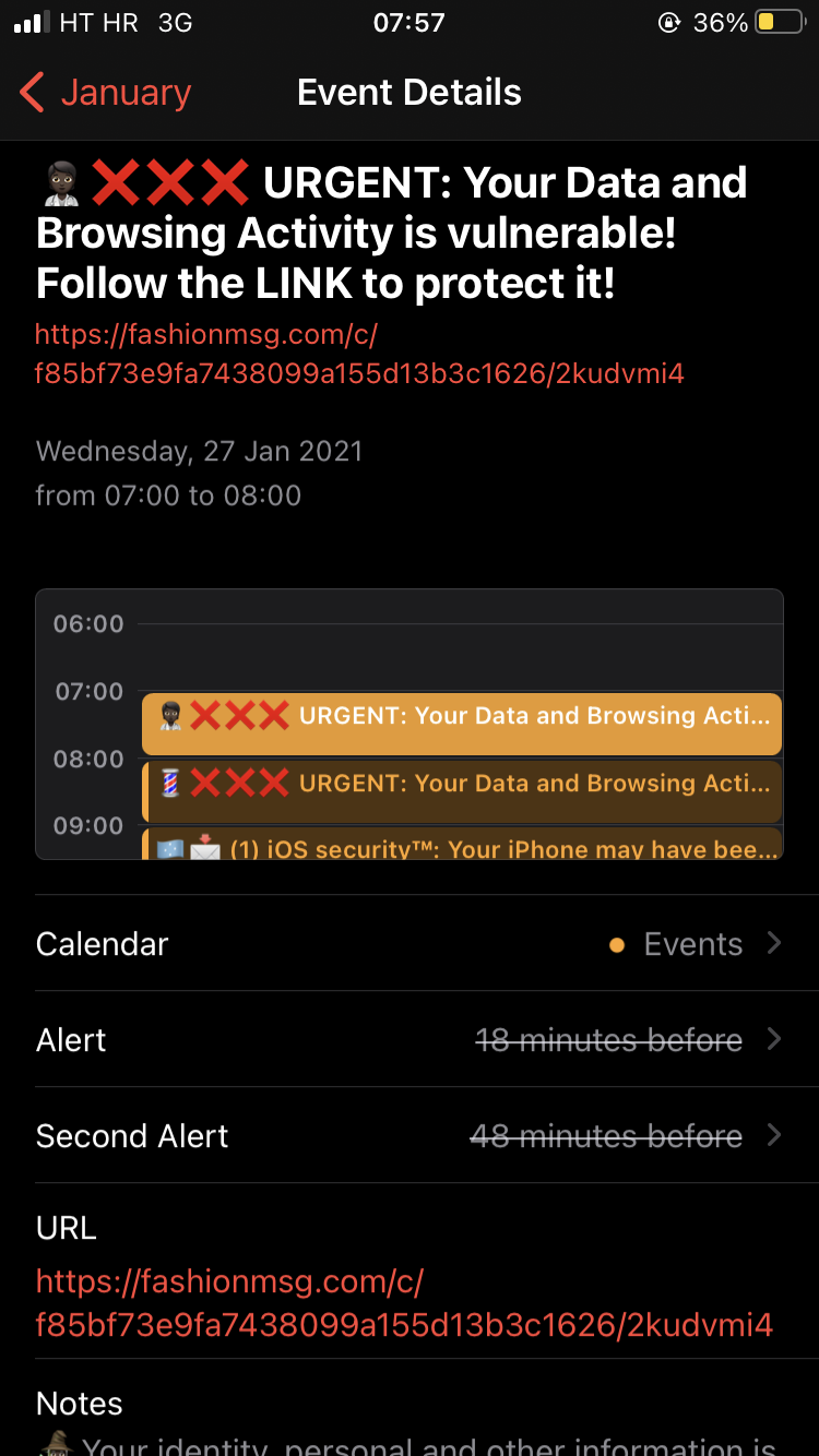 in this morning i recieved a notification that is connected to my calendar application. I will send you a photos.