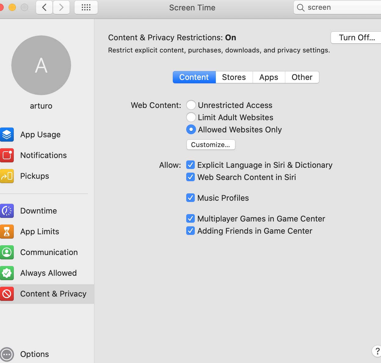 I would like to know how to use the "Allowed Websites Only" feature, in the "Screen Time" section, in "System Preferences", to allow access to specific domains only.