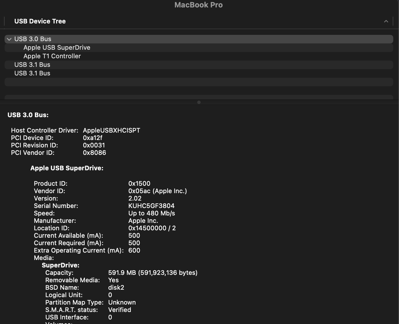 I have a MacBook Pro 2017 running Big Sur. I have a USB SuperDrive which I connect through the standard Apple USB USB-C adapter.