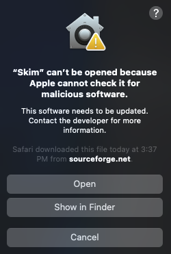 I am new to macOS devices, I bought Macbook pro M1, and when I installed Skim pdf, for pdf viewing, the app fails to work because Apple cannot check for malware; even after following their steps to overcome this problem, Skim still doesn't work.