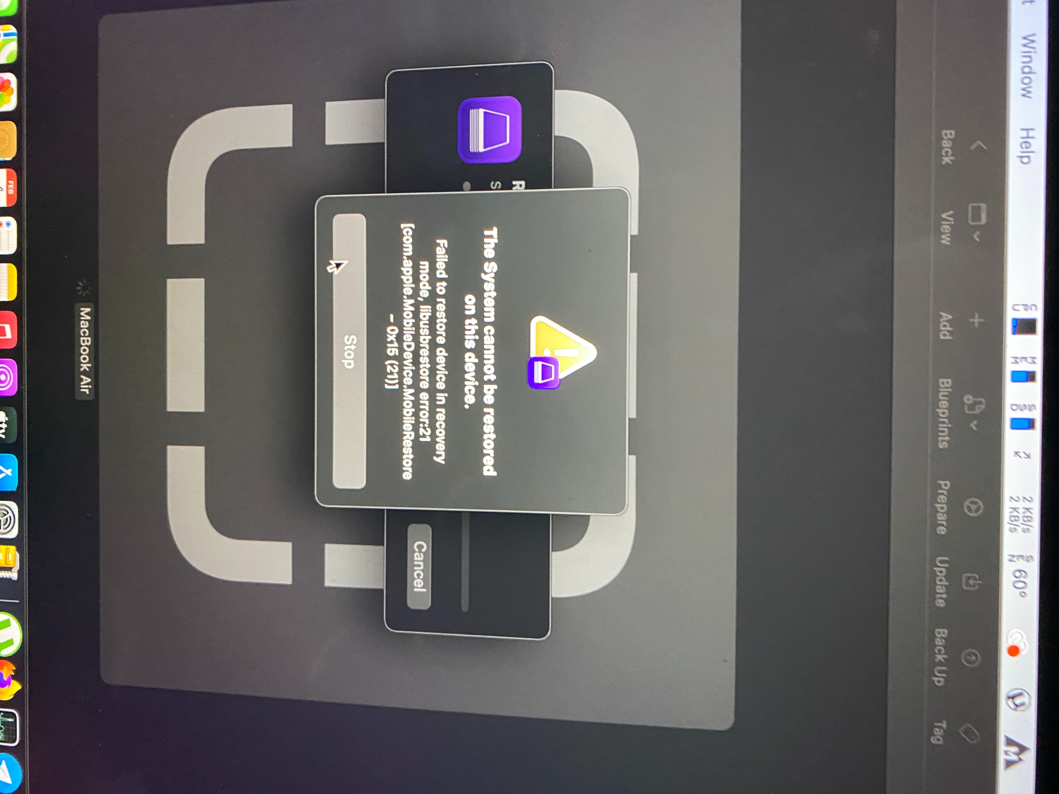 It looks like you attempted to revive or restore your Mac with Apple Silicon using Apple Configurator 2 but it failed. Please review each step on this support page to ensure it was executed properly: Revive or restore a Mac with Apple silicon with Apple Configurator 2