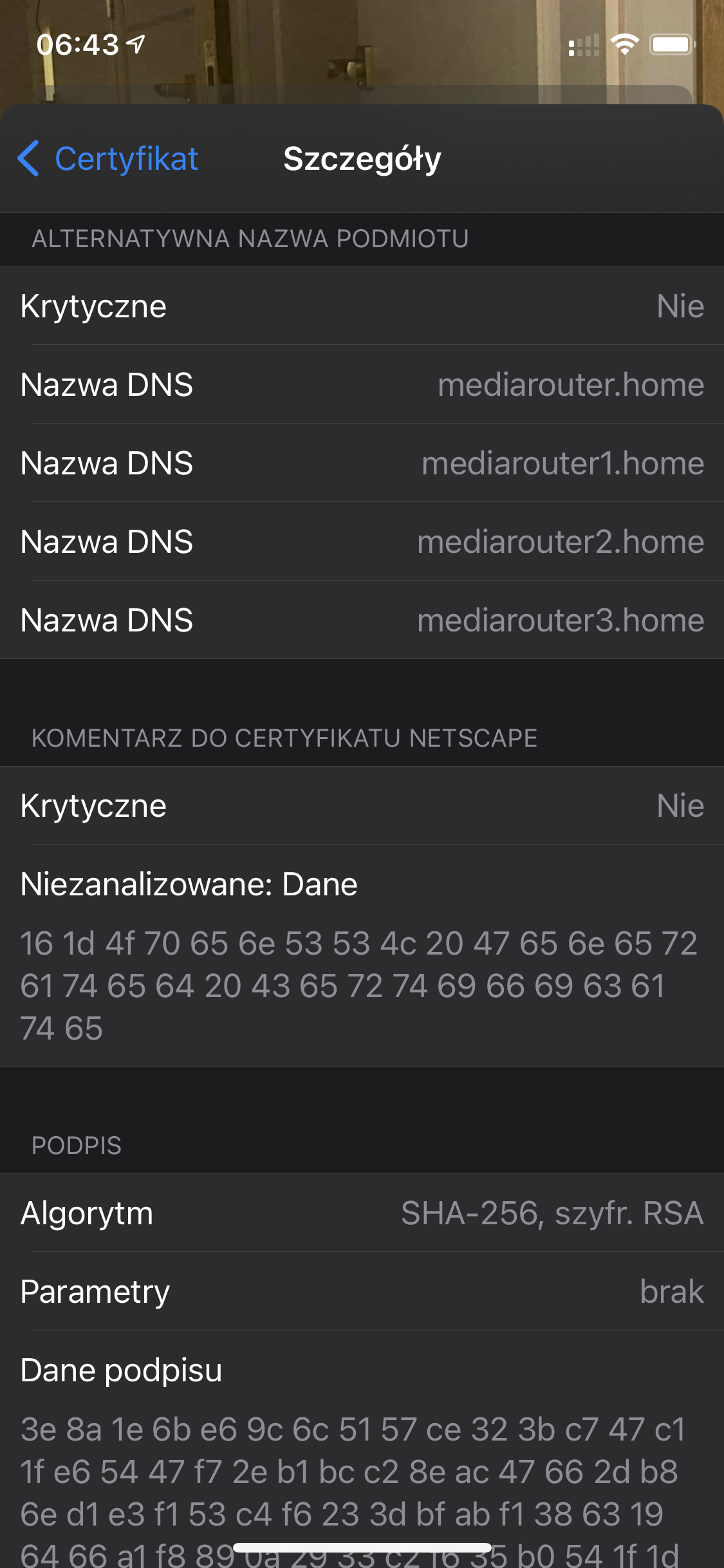 This morning my other iPhone shows communication about new not-trusted certification. In details of new certificate I find information like: Country - CN, Hubei, City - Wuhan, Public name - mediarouter.home -> I’m adding a screenshots, they are in Polish language, but I couldn’t change it what it shows up.