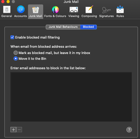 The mails can be blocked in IMAP account , but not control over domain services , also rules created can be removed Change Rules preferences in Mail on Mac - Apple Support