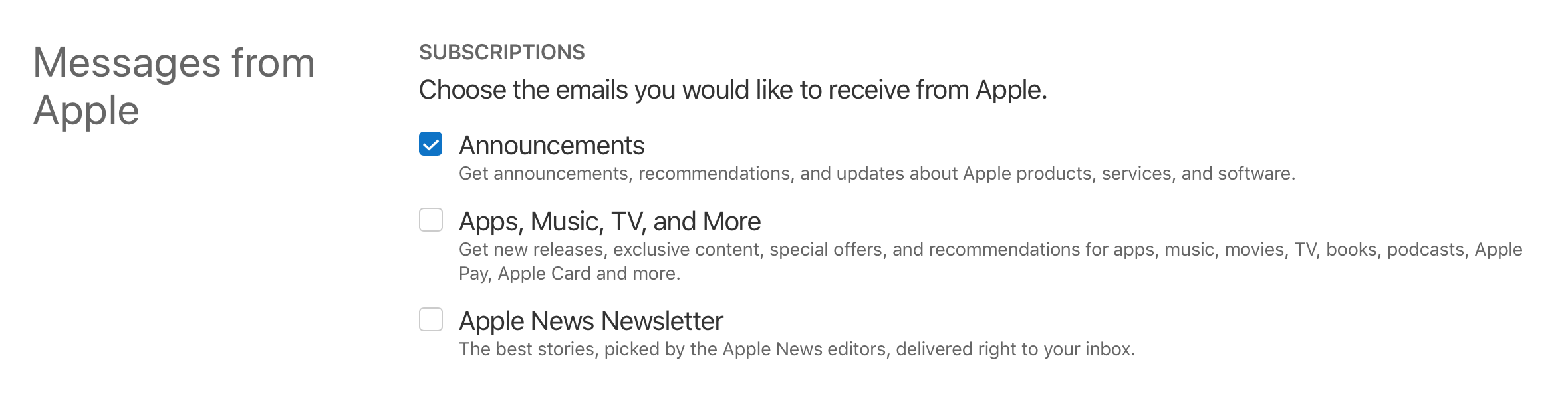 Choose the emails you would LIKE TO RECEIVE FROM APPLE.....