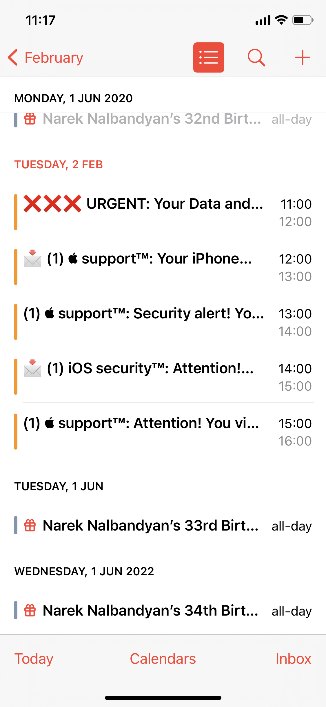 Secondly open Calendar app and tap Calendars. Untick the rogue calendar