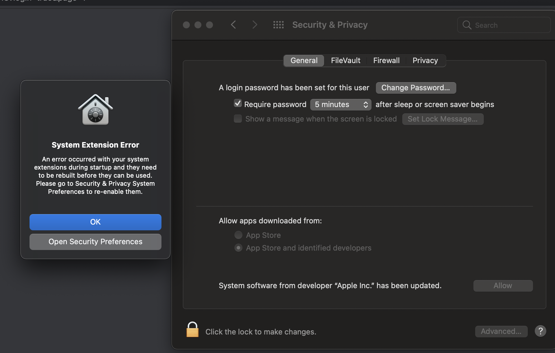 System software from developer "Apple Inc" has been updated - In Security Prefs