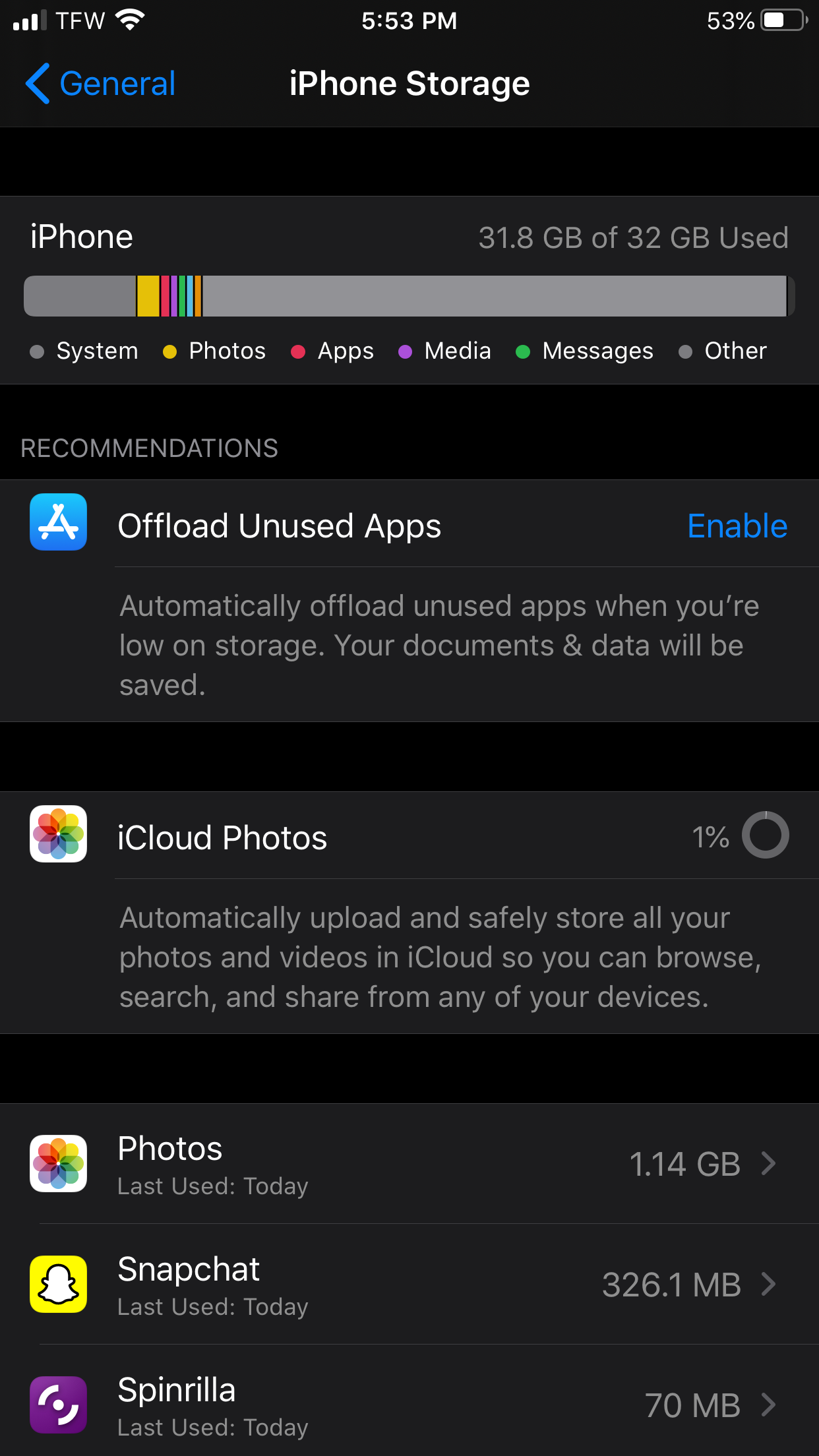 Can you share with us a screenshot of what your iPhones storage shows?