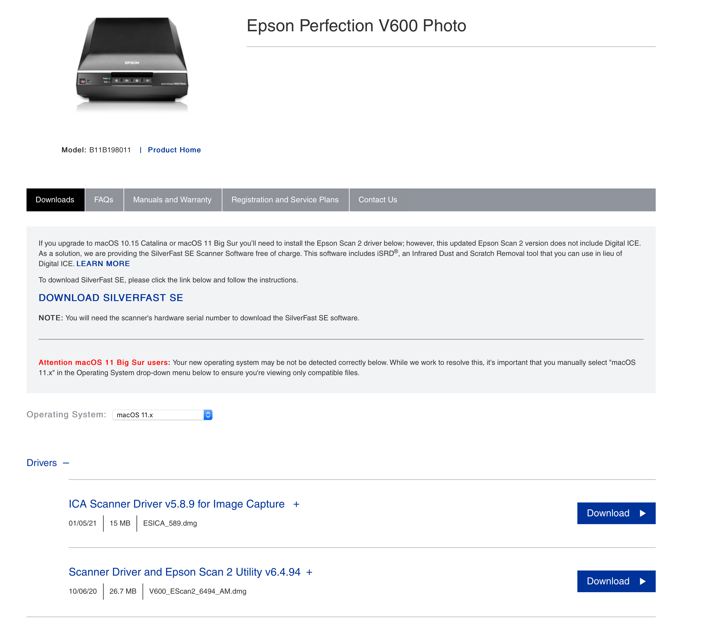 Will my Epson V600 photo perfection scanner be compatible with the Big Sur on a 2021, 16-inch MacBook Pro?