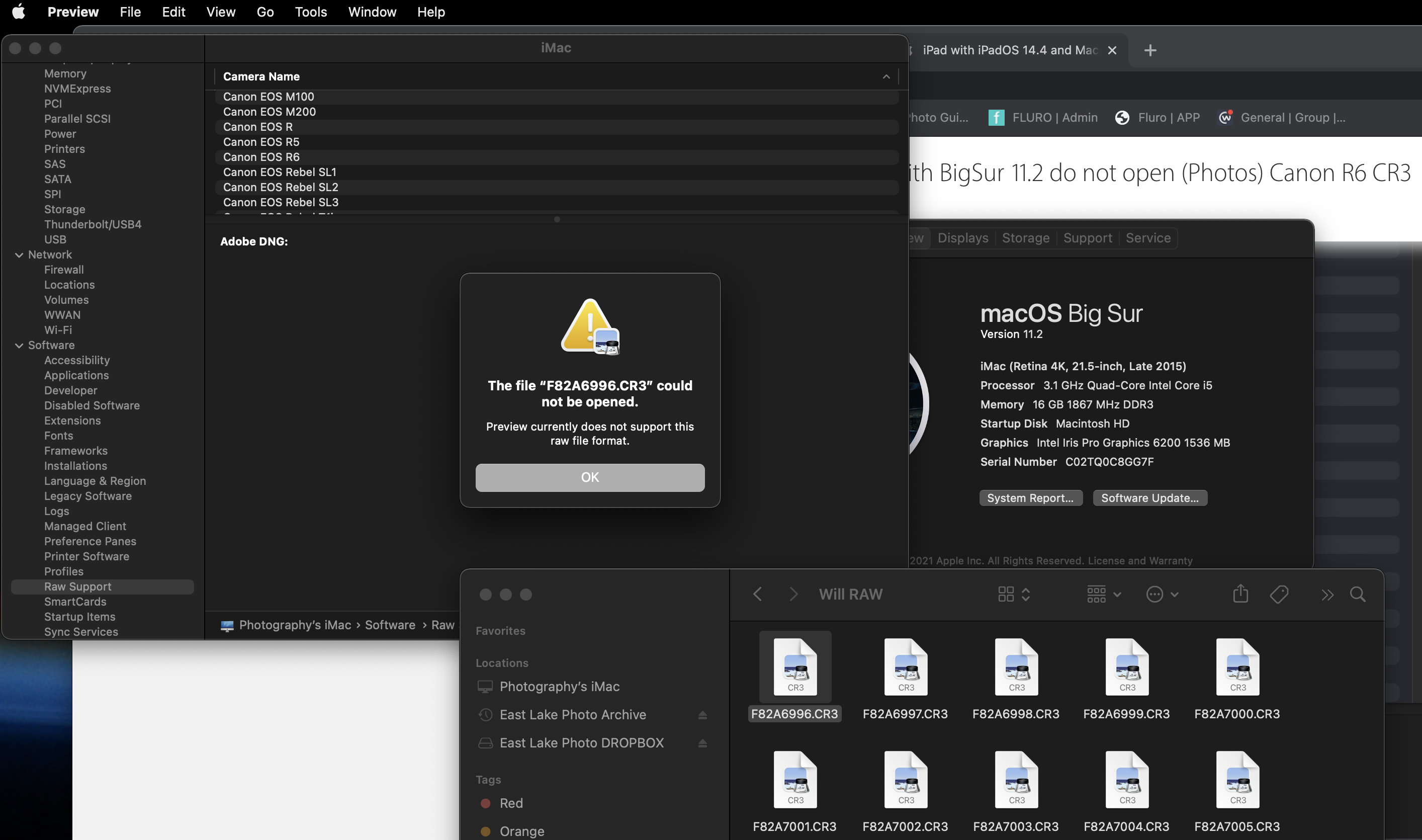 The PROBLEM is that RAW CR3 files by Canon's latest Full Frame Digital Camera, specifically the R5 and R6 are NOT supported Natively in Big Sur v11.2 and can NOT be seen in PREVIEW.