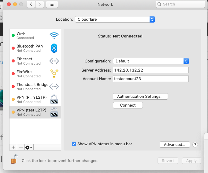 A change has occurred on my Catalina 10.15.7 Mabook pro since a crash. I can no longer connect to a VPN account while the account is locked. The "connect" button is greyed out. Previously I would just click connect and the connection proceeds as normal and connects. Now with the lock enabled connect is greyed out and I must enter my user password then connect.