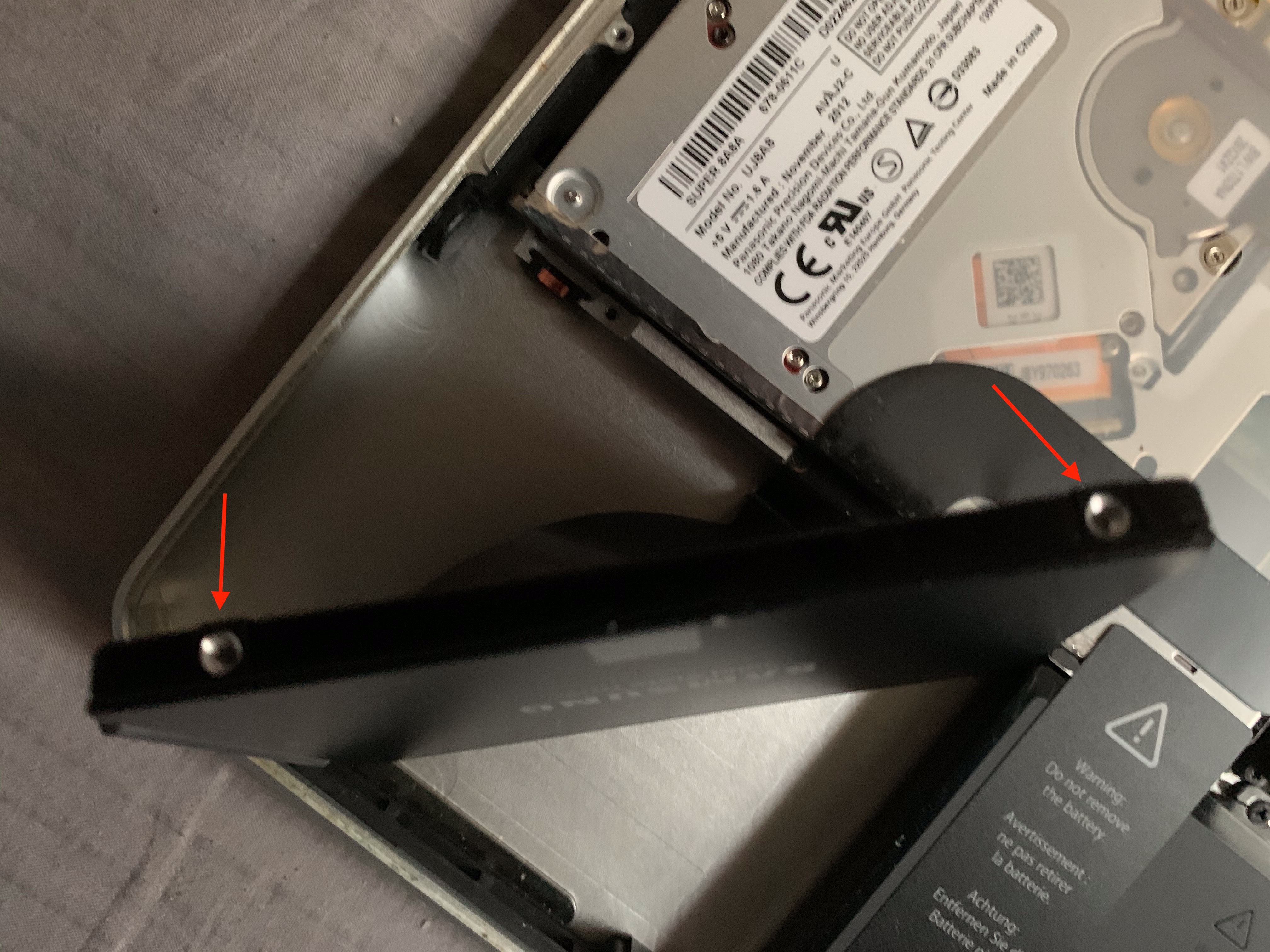Owner bought this SSD drive but it's missing the 2 screws therefore won't fit securely under the black clip on the logic board. Micro Center Support said those screws would need to be purchase separately? I am trying to remove the 2 screws on the existing laptop hdd to see if I can use them on the SSD but they are not Philips I think?