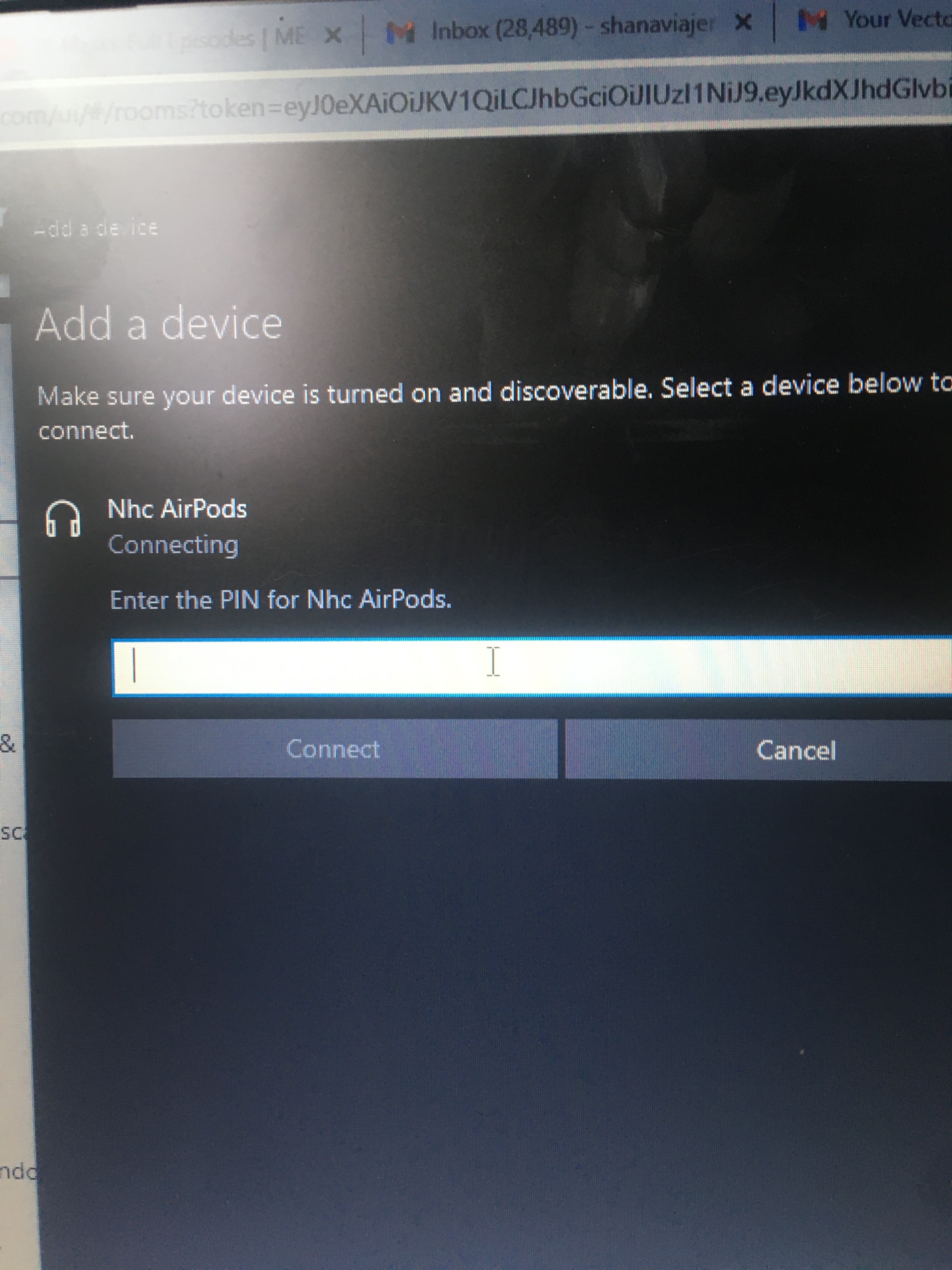 I have AirPods that I’m trying to connect to open computer but it’s telling me I need a pin for the AirPods to connect
