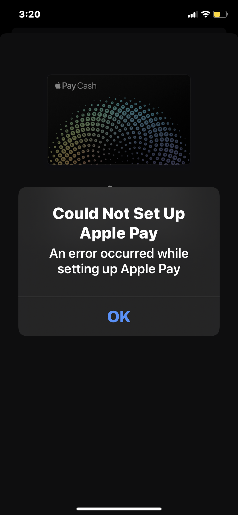 I keep getting An error occurred while staying up Apple Cash