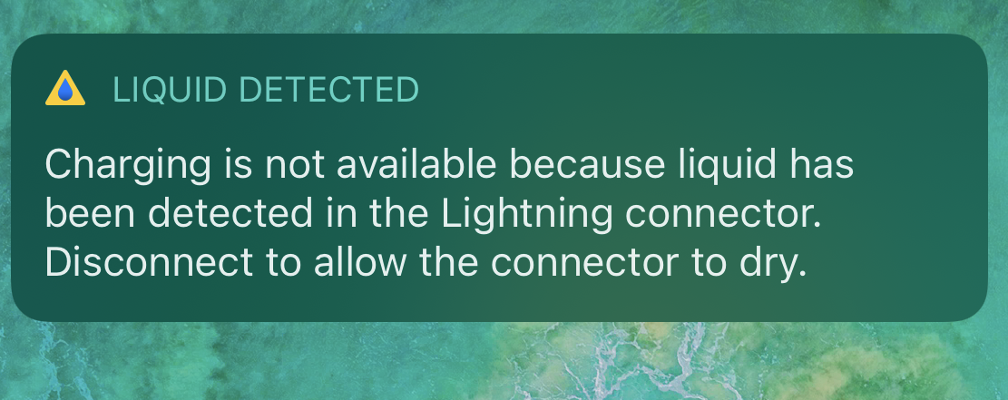 Liquid Detected in Lightning Connector - But phone did not get wet...