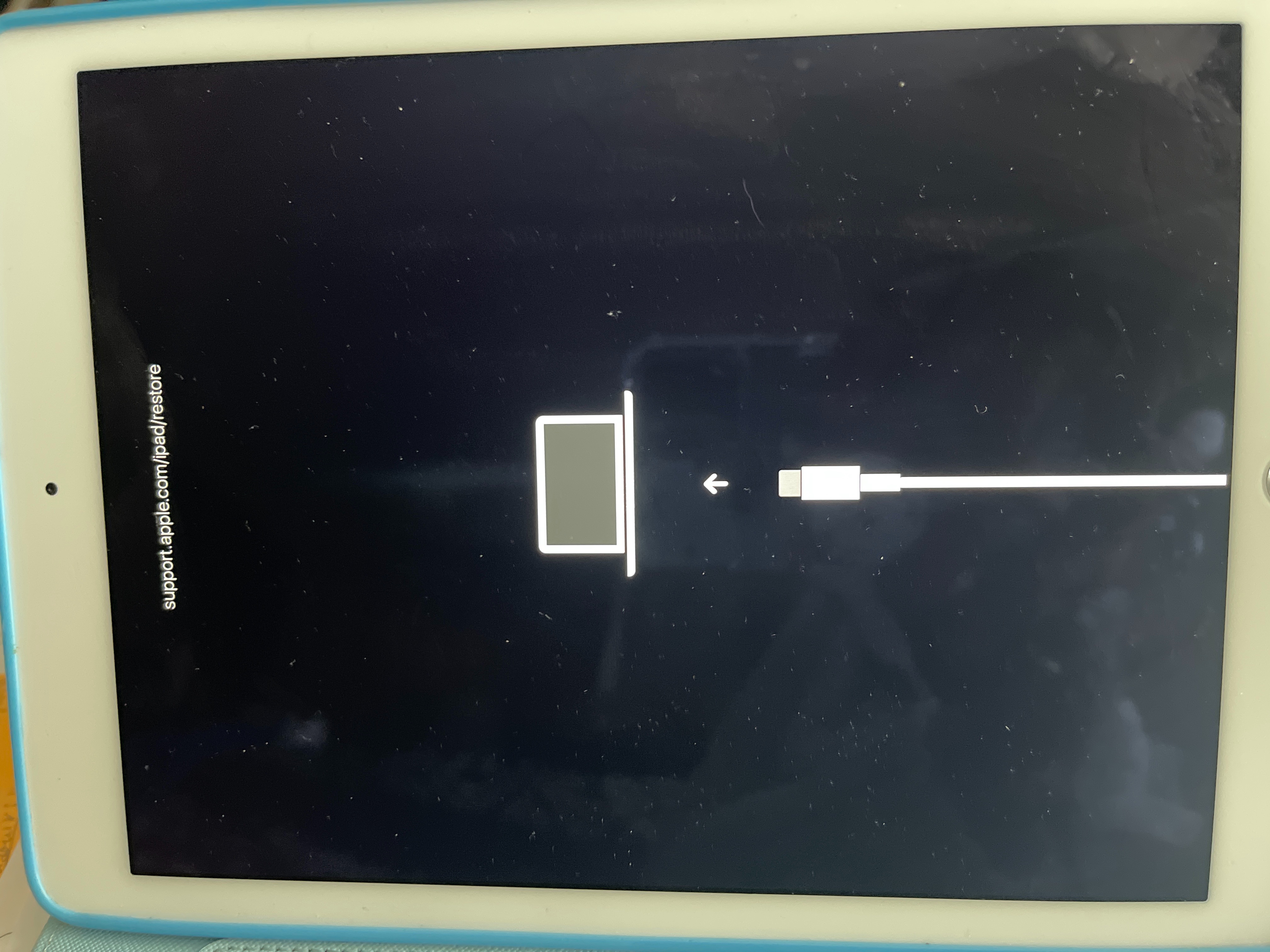 The screen of the iPad is black and gives me the message as support.apple.com/iPad/restore