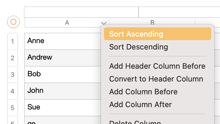I have a list of people that I want to alphabetize. I can't find the "sort" option.