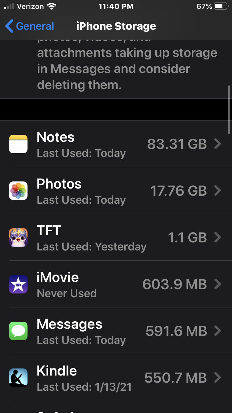 I am having an issue with the Notes application. I use the notes application for taking pictures and recording of my zoom classes for university. And I have a good bit of iCloud space that i pay monthly for this purpose. I only have all of my notes in iCloud and yet it is taking up all of my regular phone space. Is it because my 50 gb of extra iCloud storage is not enough to hold it all so it spills into my regular storage? For anyone wondering I have 127 gb of regular storage. And my phone is already full! I just bought the phone so I know that it’s not my pictures as they only take 20 gbs of space or anything else. Any help would be appreciated!