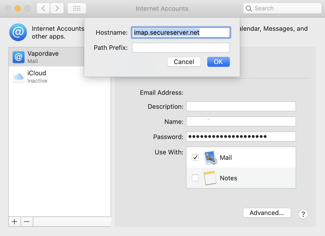 Mail won't recognize the POP server but will let me set it up using IMAP. Unfortunately the problem with IMAP is explained above, that it doesn't have the option to delete messages from server after retrieving, which led to my email being "full" this morning (my limit through GoDaddy, which had never been reached before in over 7 years of use).