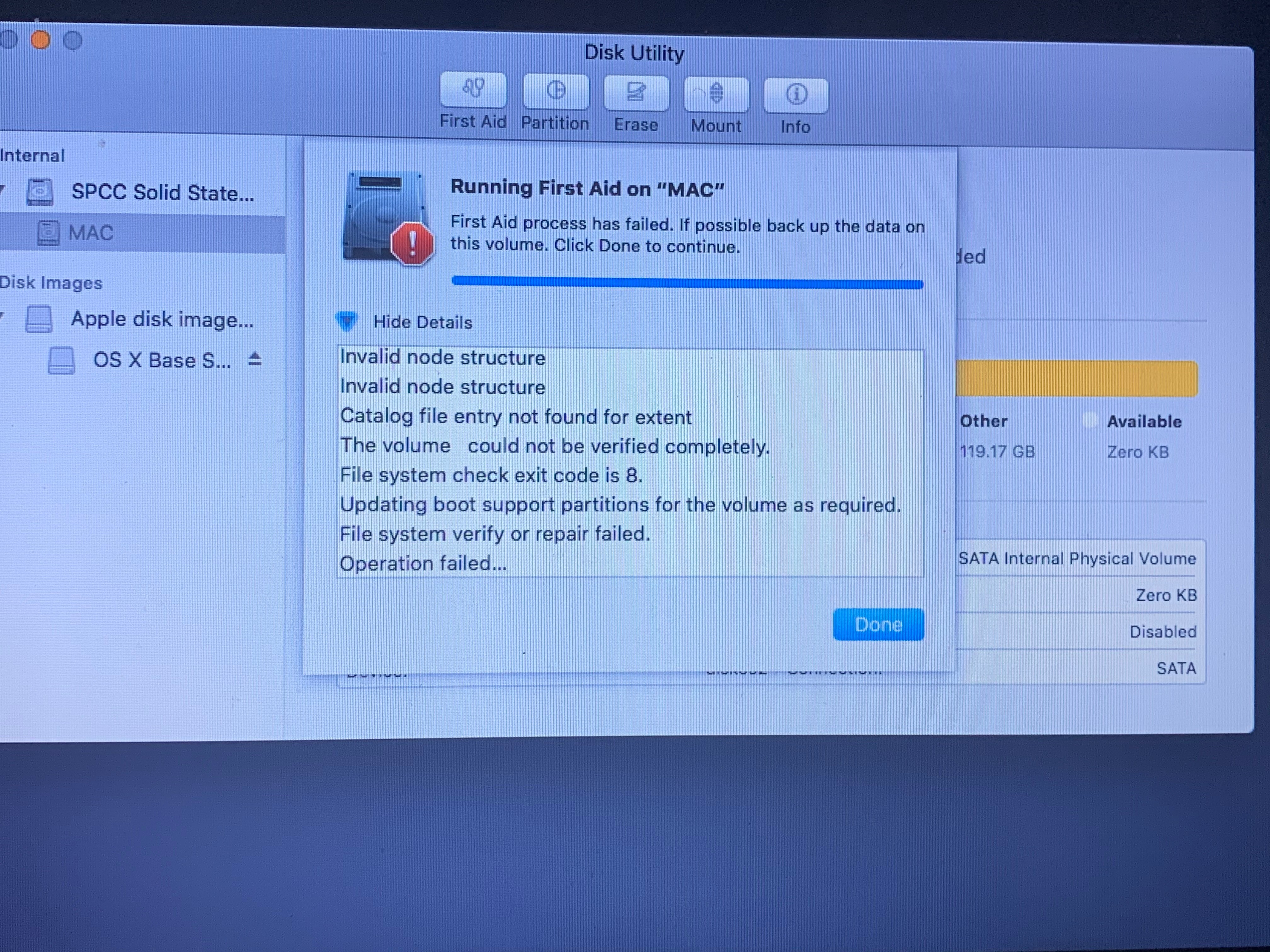 Disk Utility check exit code is 8. Macbook randomly shuts off every so often.