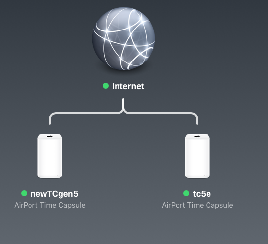 I connected the TĆs via ethernet cable and one TC via ethernet as well with a Mac Mini. WiFi on that Mac was off.