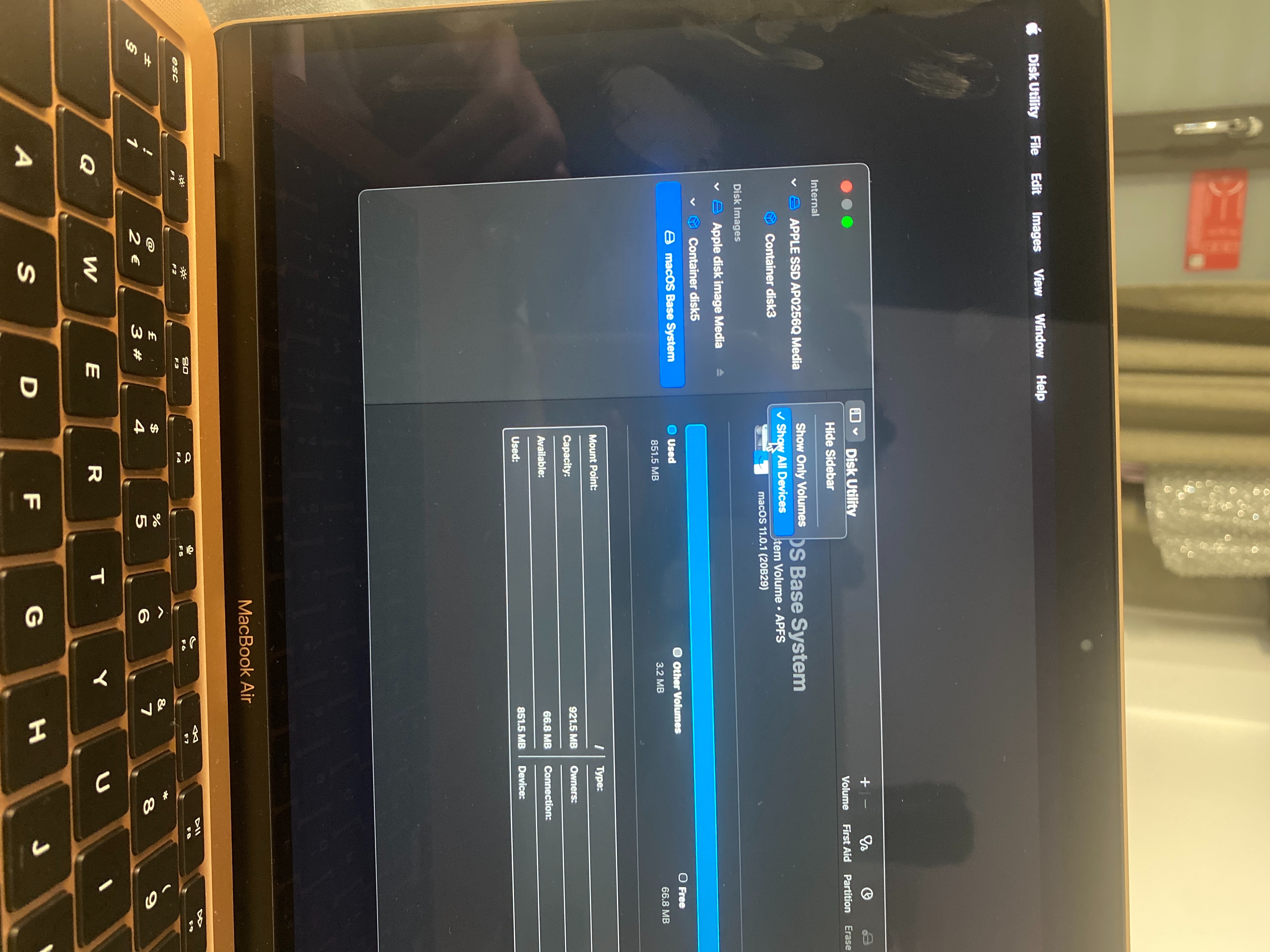 I then went in to ‘disk utility’ and clicked on the sidebar drop down menu and clicked ‘show all devices’
