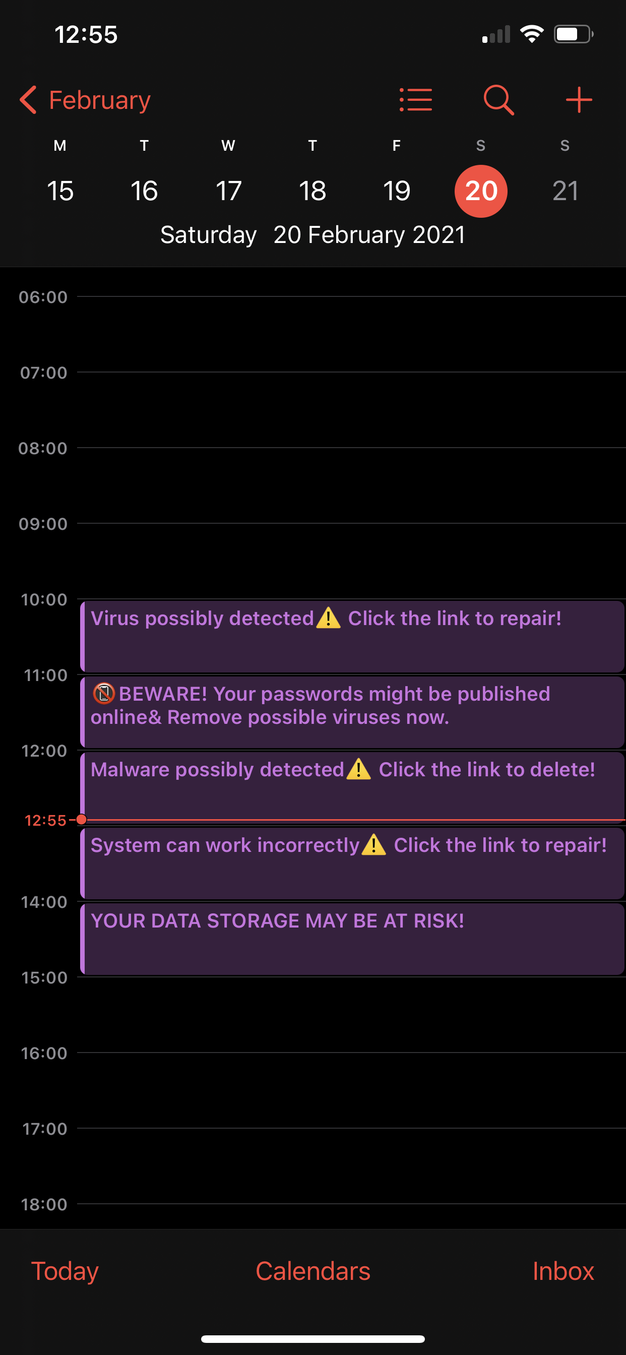 I receive the message and a reminder on my calendar about viruses on my phone and have a link to download this app security to delete this virus is from my phone I think this is scam bath I could not even delete from my calendar this reminder what’s else can I do