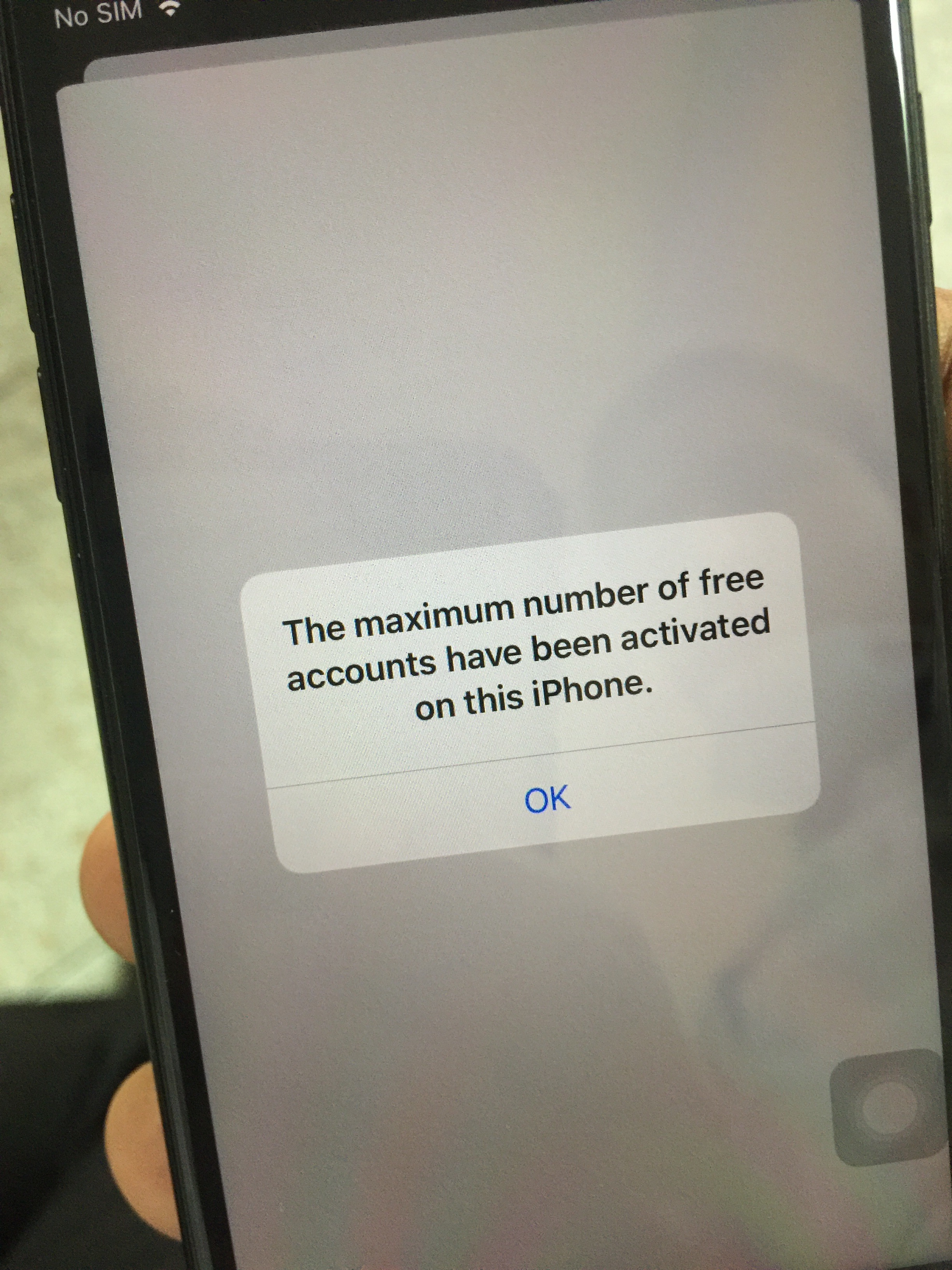 I create a Apple Id ,but when I start that time they show me,The maximum number of free accounts have been activated on this phone.