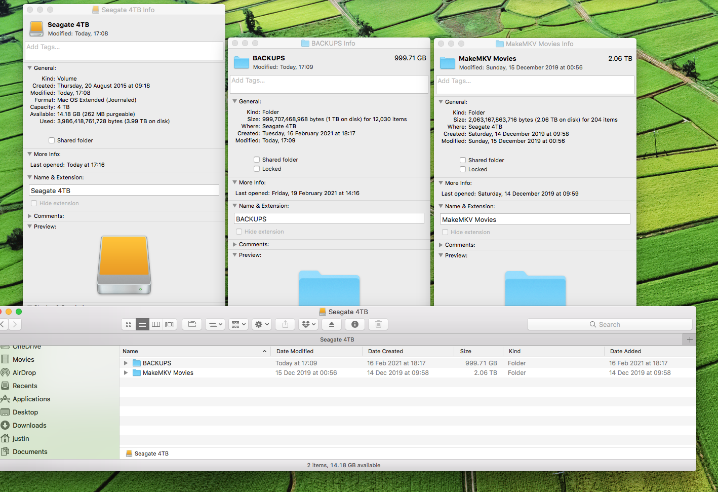 I have a 4TB external USB HDD. It has two folders on it - one shows it contains 2TB of data, and the other says it contains just under 1 TB data. So my my reckoning I should have 1TB spare still to use.