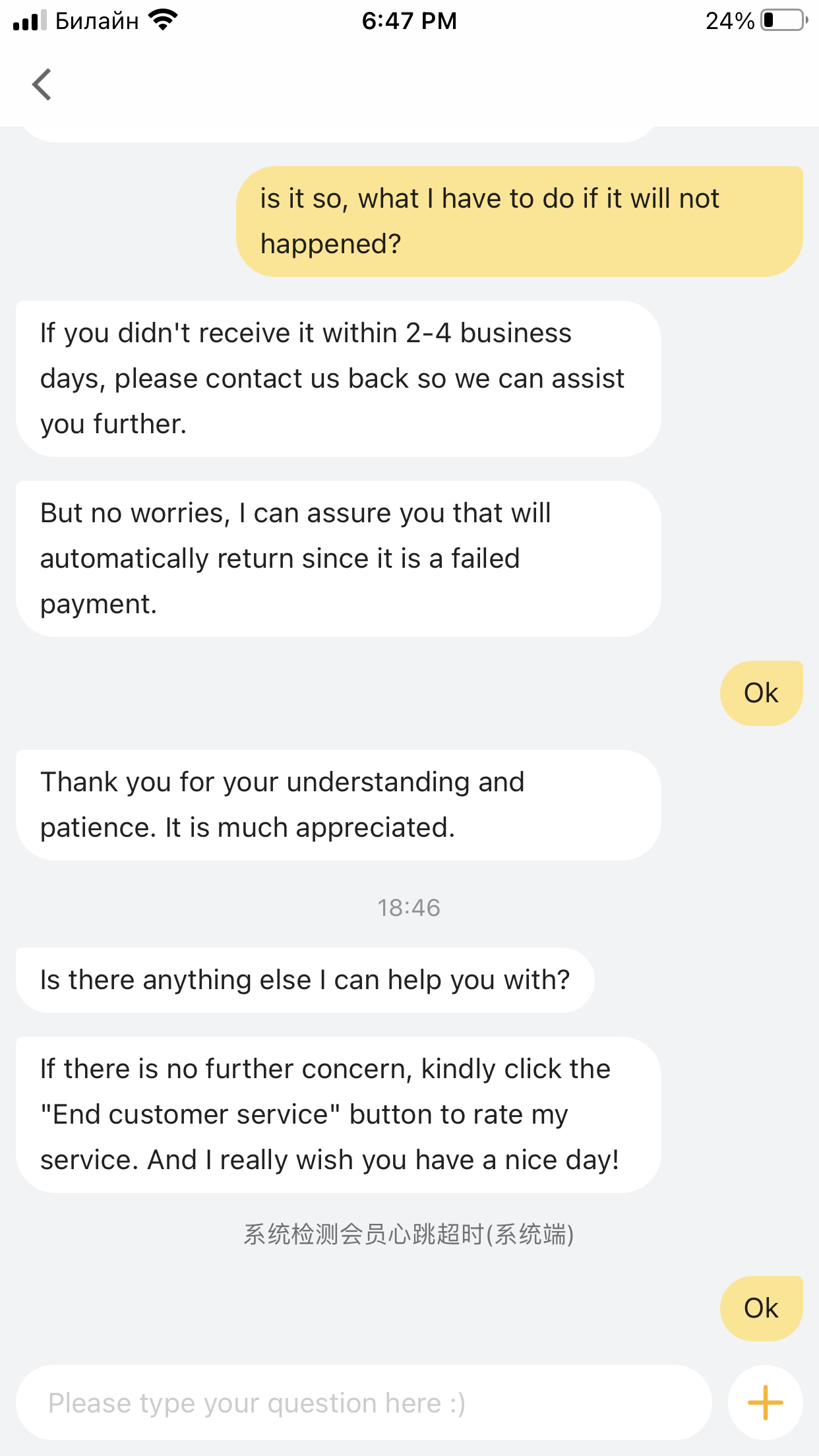 Hello , I have paid to alibaba 1828 without fees , that was an error that Paiment failed , then it was double payment I one time , I need to stop second payment and get money back , it’s copy of chat with slibaba