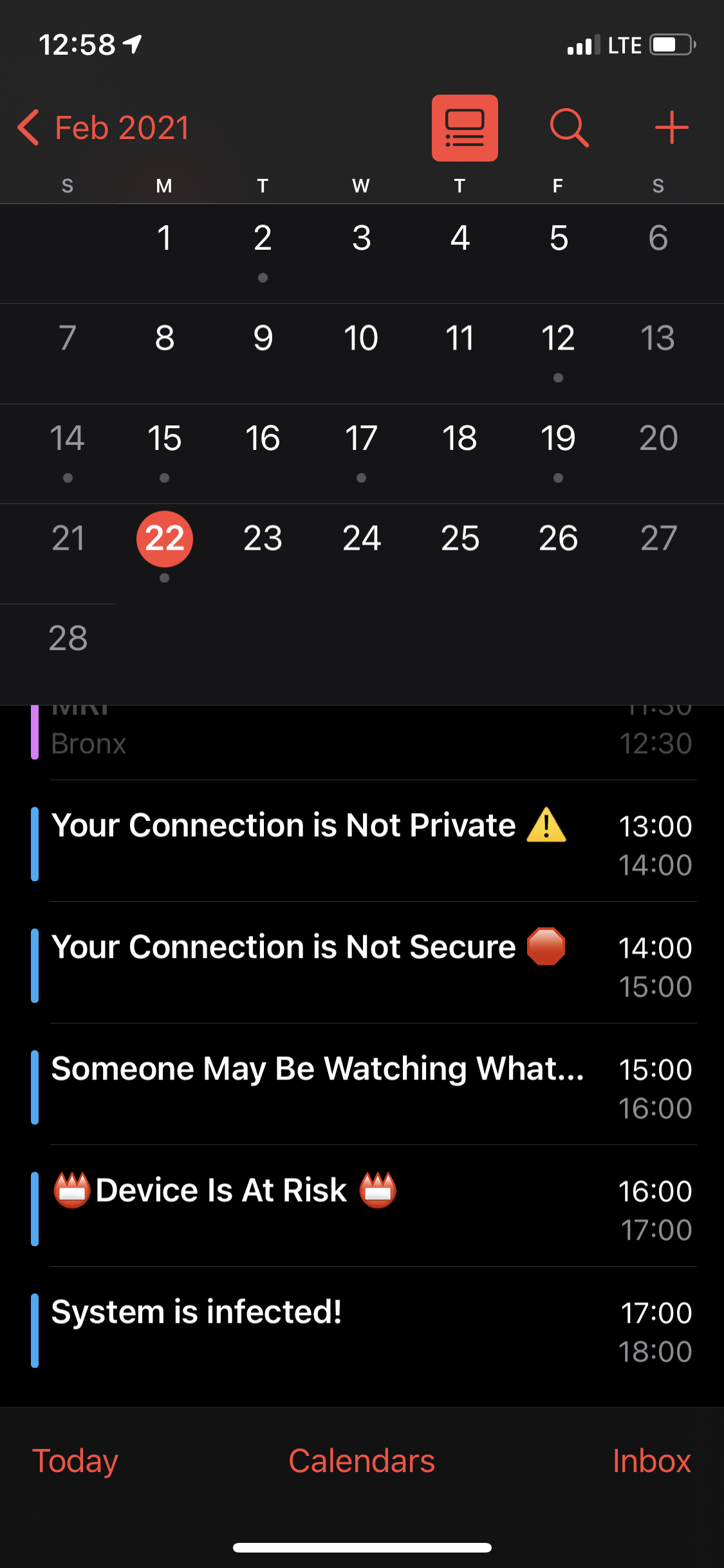Why do I keep getting a virus warning on my calendar. It’s happening everyday for a week now.
