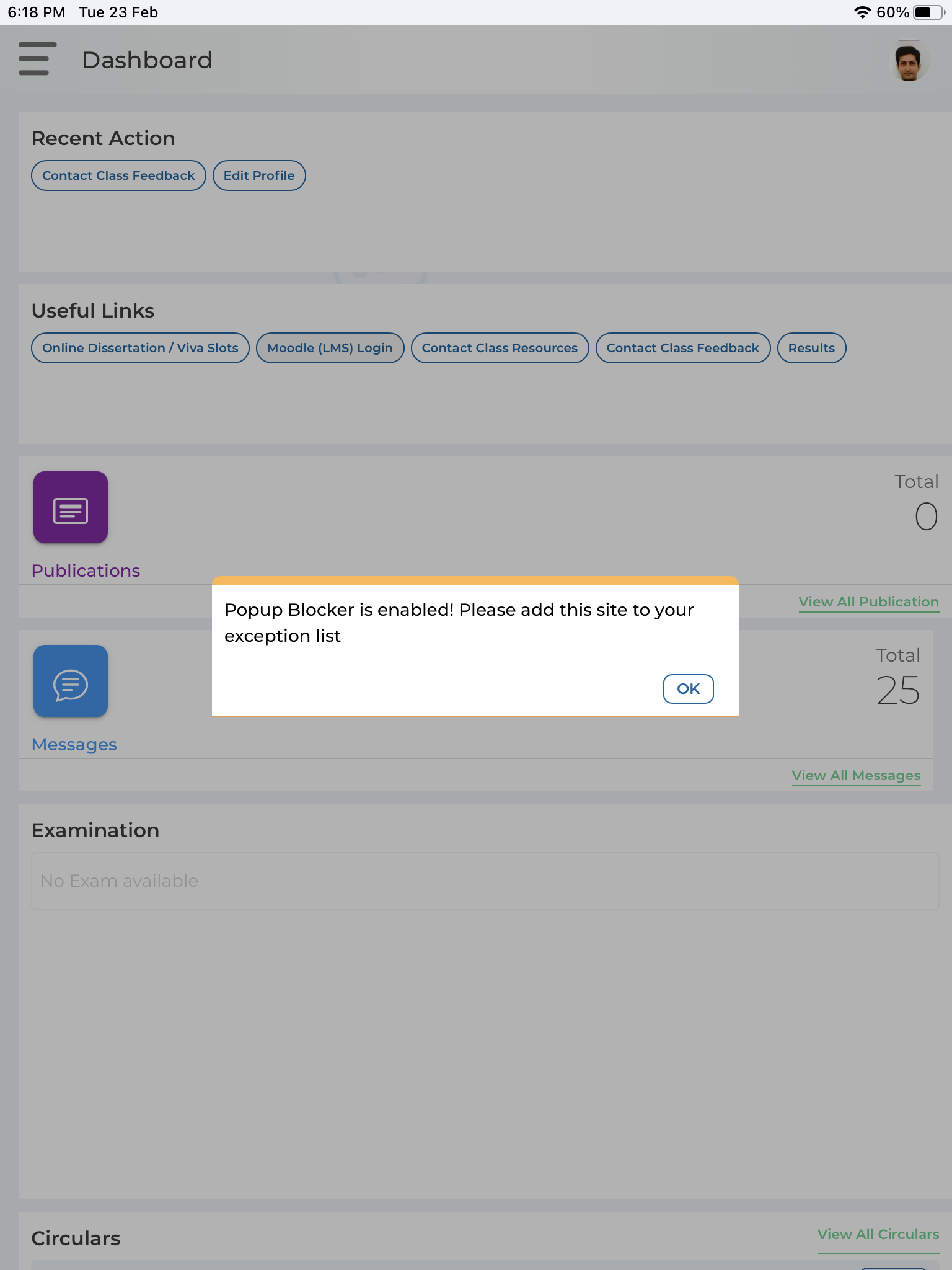 After downloading my college app from the AppStore, when I select the certain contents it I’m getting pop message on both my iPad and iPhone stating ‘ pop-up blocker is enabled please add this site to your exception list’ please suggest how can I add site to exception list.