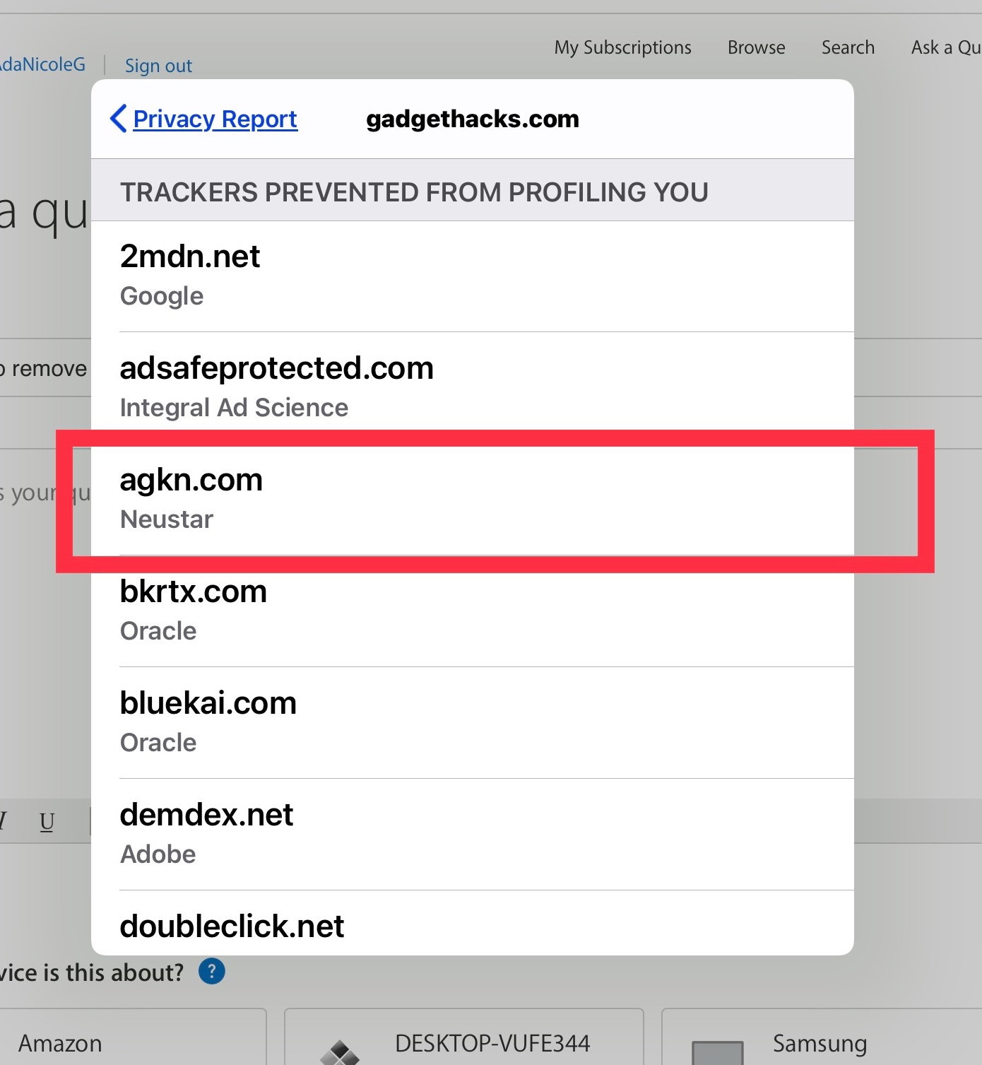 How to remove d.agkn and others from ios devices