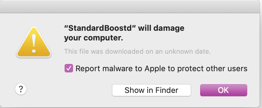 May I ask you guy anything? I got a message from my MacBook Pro that "StandardBoostd" will damage your computer. How can I do if I see this message? Thank You.