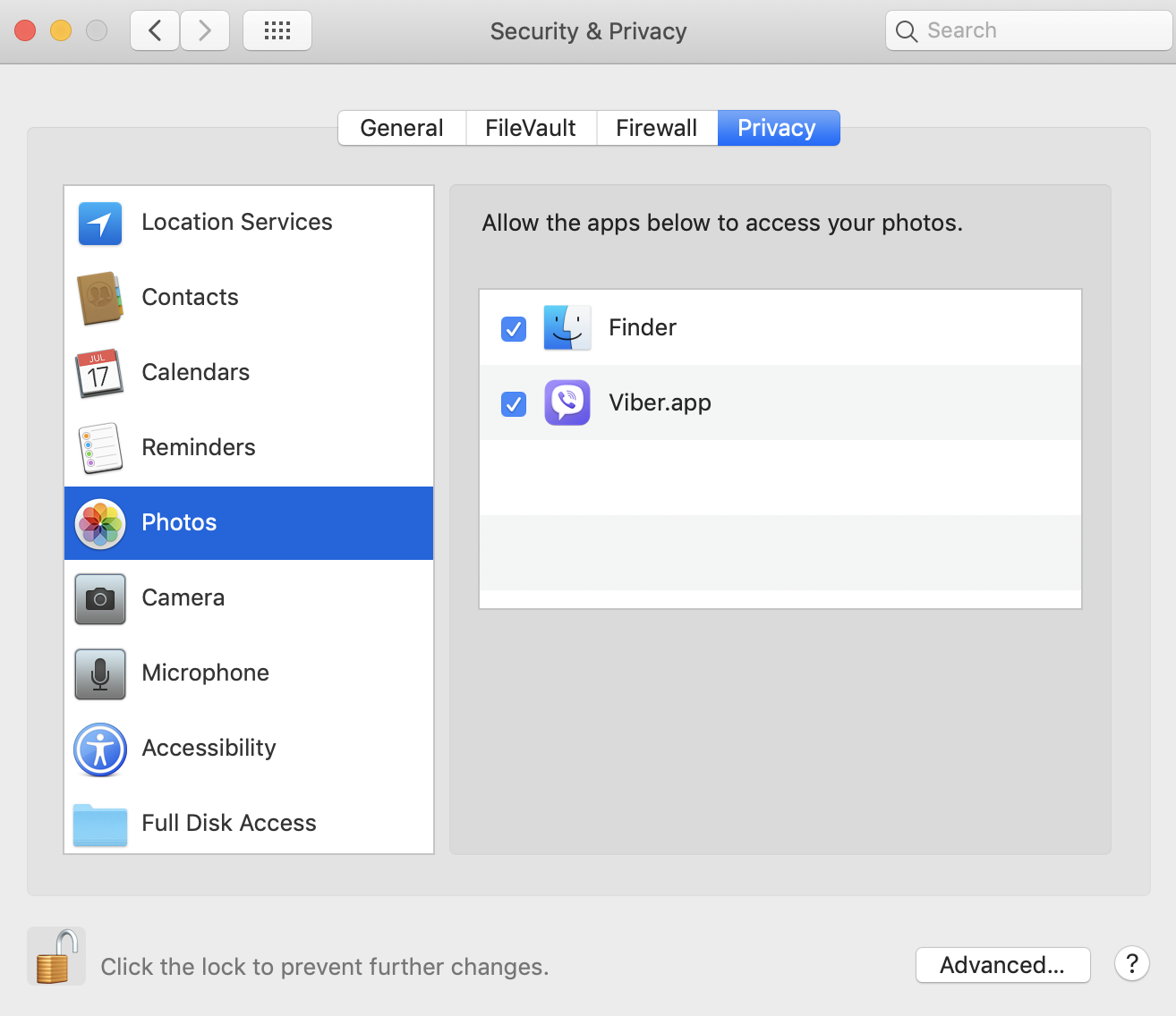 I have checked System Preferences > Security and Privacy > Allow the apps below to access your photos... but only Finder and Viber are seen there and selected - not other apps or browsers are available to select. So therefore no social media sites could access. My Desktop App Viber can access - it does work - but now browser based social media sites cannot??