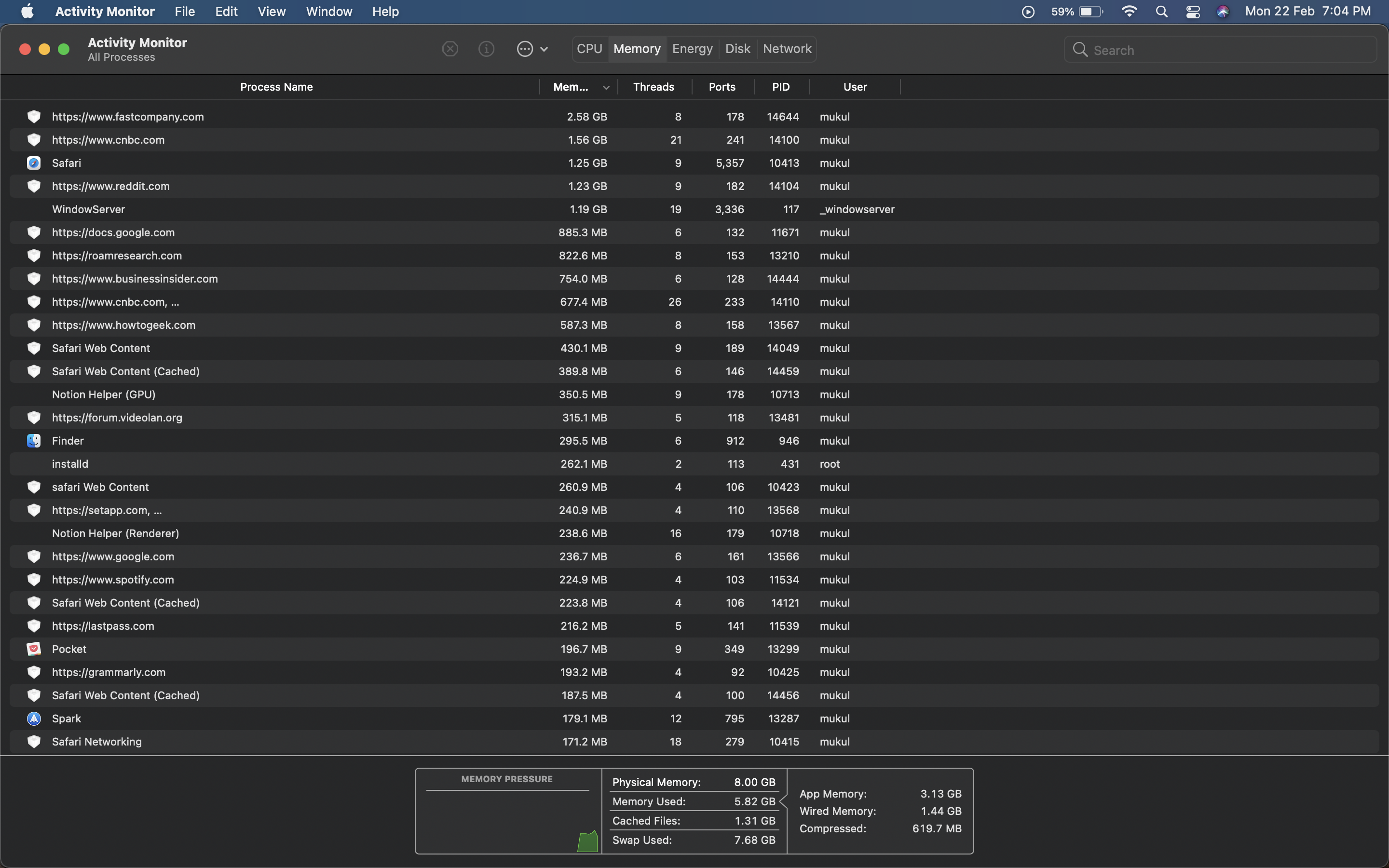 Light websites with only articles and some ads are taking RAM in GBs. Why is this? Is there some problem with my mac? Because of this issue, some tabs just automatically close because they are taking too much RAM, and a lot of them are being pushed to swap. This is a brand new base M1 Macbook Air with 8 GB of RAM.