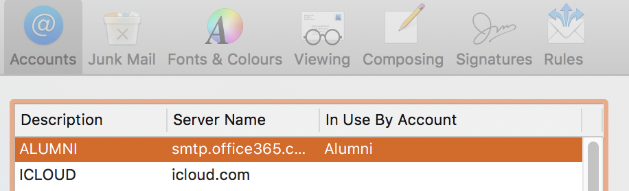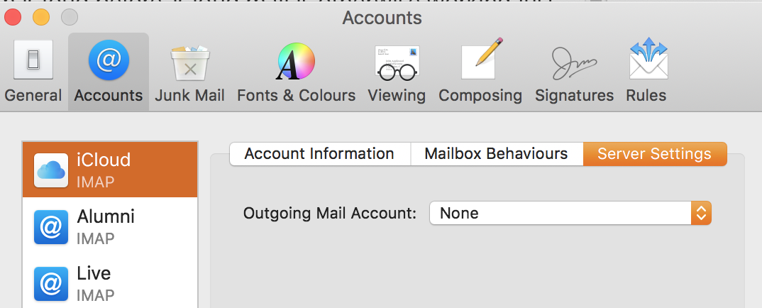Curiously, in the SMTP servers list there are two iCloud servers: "ICLOUD (offline)" and "iCloud" but when I click <Edit SMPT Server List> there is only one, "ICLOUD" but "In use by Account" is blank.