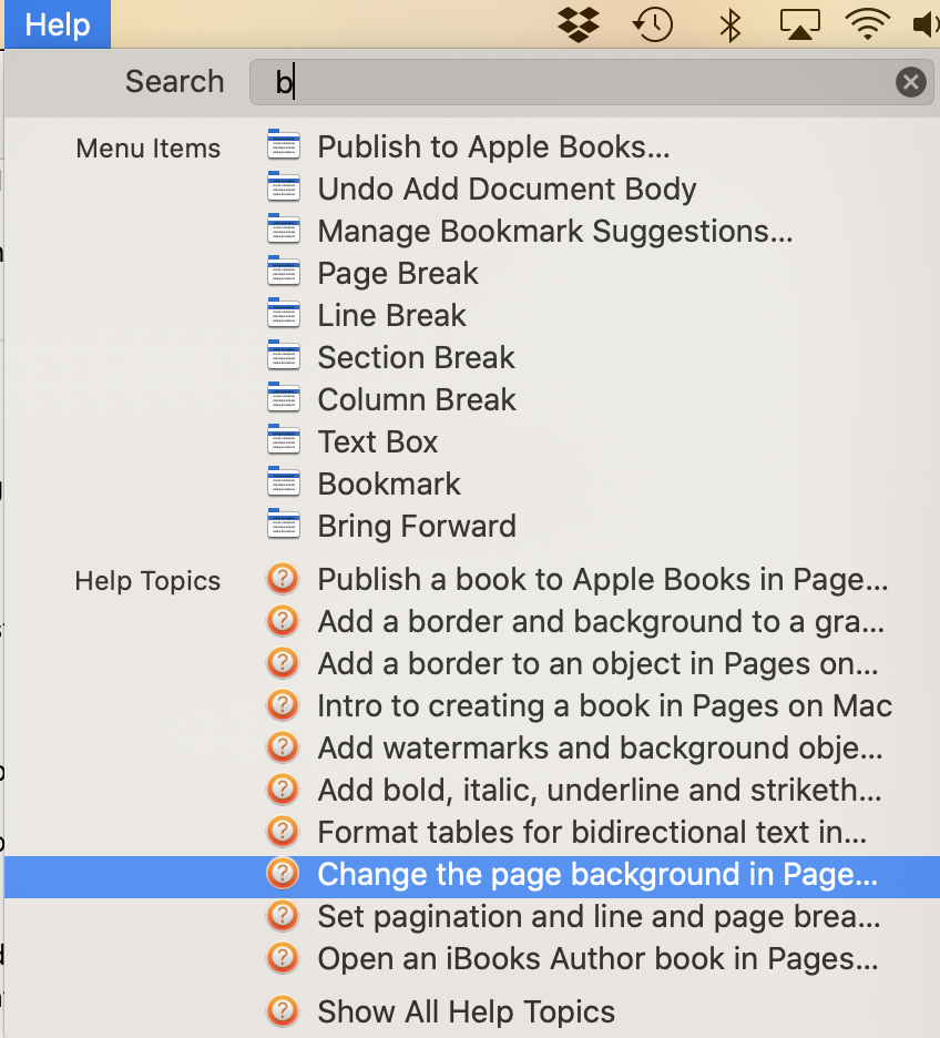 Edit: this may help you. Pages Help Menu: