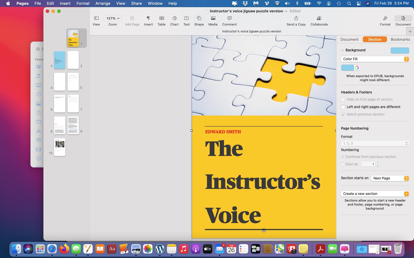 I am using Pages 10.3.9 with Big Sur on my MacBook Air