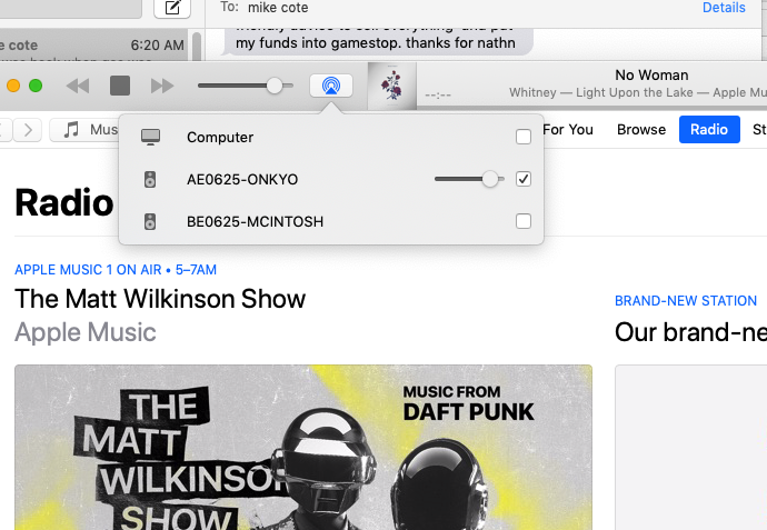 I'm not going to pay for apple radio if it doesn't play on my stereo EXAMPLE the Matt Wilkonson Show this won't play it comes out of my mac pro not the stereo -